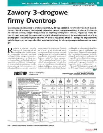55 zawory 3-drogowe Zawory 3-drogowe firmy Oventrop Oventrop specjalizuje siÍ w produkcji armatury do wyposaøania rurowych systemÛw instalacyjnych. Obok armatury odcinajπcej, odpowietrzajπcej czy rÛwnowaøπcej w ofercie firmy moøna znaleüÊ zawory, napÍdy i regulatory do regulacji wydajnoúci (mocy). Regulacja moøe dotyczyÊ ca≥ej instalacji (armatura w kot≥owni lub wÍüle cieplnym), jej wydzielonych stref (np. pionopiÍter) lub koÒcowych odbiornikÛw ciep≥a, wzglÍdnie ch≥odu, i polega na dopasowaniu natÍøenia przep≥ywu czynnika i/lub jego temperatury do bieøπcego zapotrzebowania na energiÍ. R egulacja z uøyciem zaworÛw 3-drogowych (mieszajπcych lub rozdzielajπcych) charakteryzuje siÍ zmiennoúciπ natÍøenia przep≥ywu w obiegu wtÛrnym przy prawie niezmiennym natÍøeniu przep≥ywu w obiegu pierwotnym (zasilajπcym). Instalacja tak skonstruowana ma obniøone wymagania co do rÛwnowaøenia hydraulicznego (regulacja statyczna, np. z uøyciem zaworÛw regulacyjnych Hydrocontrol, jest w zasadzie wystarczajπca) i jest elastyczna. Przejawia siÍ to m.in. w jej nieznacznej reakcji na zmiennoúÊ obciπøenia oraz w gotowoúci do podania energii w dowolnym punkcie niezw≥ocznie po otwarciu przez zawory 3-drogowe Ñdrzwiî do obiegu wtÛrnego. Oferowana przez firmÍ Oventrop rÛønorodnoúÊ wykonaÒ zaworÛw pozwala skonstruowaÊ w zasadzie dowolne uk≥ady mieszajπce. Znajdujπ one zastosowanie nie tylko po stronie odbiorczej instalacji, lecz po- zwalajπ takøe na po≥πczenie i bezkonfliktowπ wspÛ≥pracÍ rÛønych ürÛde≥ ciep≥a ñ np. kot≥Ûw, baterii s≥onecznych czy pomp ciep≥a. Tym bardziej, øe znaczπca liczba oferowanych typÛw zaworÛw wykonana jest z brπzu. Ich pe≥na odpornoúÊ na odcynkowanie umoøliwia obs≥ugÍ m.in. mediÛw solankowych (w pompach ciep≥a) lub solarnych bez obawy awarii systemu. Na stronie 3.68 katalogu Oventrop (wydanie 2014, grupa 3) moøna znaleüÊ przejrzystπ 56 Rys. 1. Fragment katalogowego zestawienia zaworÛw trÛjdrogowych Oventrop 55 56 zawory 3-drogowe Obs≥uga urzπdzeÒ koÒcowych Armatura Oventrop moøe byÊ uøyta do regulacji wydajnoúci m.in. nastÍpujπcych urzπdzeÒ koÒcowych: ï fan-coilíe i aparaty indukcyjne, ï nagrzewnice wentylacyjne, ï sufitowe belki ch≥odzπce, ï podgrzewacze ciep≥ej wody, ï urzπdzenia pralnicze, ï ogrzewania p≥aszczyznowe (pod≥ogowe lub úcienne). 55 tabelÍ (rys. 1), zawierajπcπ uporzπdkowane informacje o zaworach 3-drogowych, pozwalajπce na ich wstÍpny dobÛr oraz wytypowanie wspÛ≥pracujπcego napÍdu. Zawory 3-drogowe Tri-CTR Nowe 3-drogowe zawory Tri-CTR (rys. 2) mogπ byÊ uøyte, w zaleønoúci od sposobu pod≥πczenia ich w instalacji, do rozdzia≥u, zmieszania lub prze≥πczania kierunku strumienia przep≥ywu. Zawory wykonane sπ z brπzu i przez uniwersalne przy≥πcze gwintowe M 30 x 1,5 przystosowane sπ do wspÛ≥pracy z napÍdami lub termostatami (regulatorami temperatury) Oventrop. NakrÍtki z≥πczne i odpowiednie tuleje uszczelniane na p≥asko pozwalajπ na wykonanie rÛønego typu z≥πczy z rurami stalowymi, miedzianymi lub wykonanymi z tworzywa. Typoszereg zawiera armaturÍ w úrednicach od DN 15 do DN 50. Ze wzglÍdu na zakres obs≥ugiwanych przep≥ywÛw (kvs od 2,5 do 10,5), zawory predestynowane sπ do stosowania w mniejszych kot≥owniach (na stronie ürÛd≥a lub rozbioru). CzÍsto spotykane jest stosowanie takich zaworÛw do prze≥πczania podgrzewaczy wody opartych na dwÛch ürÛd≥ach ciep≥a. Mogπ byÊ teø uøyte do regulacji mocy odbiornikÛw koÒcowych w wiÍkszych instalacjach poprzez dopasowanie natÍøenia przep≥ywu lub temperatury czynnika w obiegu odbiornika (wtÛrnym). Zawory mogπ pracowaÊ w instalacji pracujπcej na czynniku o temperaturze od -10 do 120OC przy ciúnieniu roboczym PN 16. Przyk≥ad zastosowania ZawÛr Tri-CTR uøyty w funkcji rozdzielajπcej w instalacji z pompπ ciep≥a do sterowania podgrzewem wody w zasobniku c.w.u. (rys. 3). Ze wzglÍdu na wahania temperatury w ürÛdle bezpoúredni podgrzew wody skutkuje niestabilnoúciπ jej temperatury w zasobniku. Rozwiπzaniem jest zastosowanie wymiennika poúrednie- 56 Rys. 2. Nowy zawÛr trÛjdrogowy Tri-CTR Rys. 3. ZawÛr Tri-CTR w funkcji rozdzielajπcej w instalacji z pompπ ciep≥a do sterowania podgrzewem wody w zasobniku c.w.u. go i zaworu trÛjdrogowego z napÍdem, prze≥πczajπcego przep≥yw na zasobnik c.w.u. dopiero wtedy, kiedy temperatura w obiegu wymiennika ciep≥a osiπgnie wystarczajπcy poziom. Zawory ko≥nierzowe PN 16 Znacznie bardziej rozbudowany jest nowy typoszereg zaworÛw ko≥nierzowych PN 16. W wersji fabrycznej zawÛr dostarczany jest jako 2-drogowy. Po zdjÍciu zaúlepki moøe byÊ jednak ñ w zaleønoúci od sposobu montaøu w instalacji ñ uøyty w funkcji zaworu 3-drogowego do rozdzia≥u lub zmieszania strumienia. Ten rodzaj uniwersalnoúci armatury sprzyja stosowaniu jednego jej typu w rÛønych uk≥adach instalacyjnych. Korpusy zaworÛw wykonane sπ z øeliwa, grzyby z mosiπdzu a trzpieÒ ze stali nierdzewnej. Typoszereg obejmuje úrednice od DN 15 (ta úrednica oferowana jest w trzech wykonaniach rÛøniπcych siÍ wspÛ≥czynnikiem kvs) do DN 150 i obs≥uguje szeroki zakres przep≥ywÛw ñ od 1 do 350 (kvs). Pozwala to na uøycie zaworÛw rÛwnieø w roz- Rys. 4. ZawÛr prosty, nr kat. 113 08.., stosowany rÛwnieø jako 3-drogowy wrzesieÒ 2014 57 zawory 3-drogowe leg≥ych instalacjach obs≥ugujπcych obiekty o duøej kubaturze. Temperatura czynnika powinna zawieraÊ siÍ w przedziale od 0 do 130OC, a ciúnienie robocze nie przekraczaÊ 16 barÛw. Charakterystyka zaworÛw jest zaleøna od sposobu w≥πczenia ich do instalacji (liniowa lub sta≥oprocentowa). Odpowiednie napÍdy moøna dobraÊ na podstawie materia≥Ûw producenta. Z≥πczki Rys. 5. ZawÛr 3-drogowy Tri-D plus Dla u≥atwienia montaøu zaworÛw Oventrop oferuje rÛwnieø rÛønego rodza- ju z≥πcz