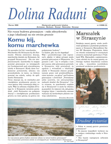 • • o lna a unl Marzec 2000 Miesi~cznik spofecznosci lokalnej Arciszewo - Borkowo - Goszyn - Rotmanka - Straszyn Nie rusza budowa gimnazjum - rada zdecydowala o jego lokalizacji na nie swoim gruncie Komu kij, komu marchewka Na poczqtku byl kij i marchewka. Marchewka dla Straszyna kij dla Rot manki. P6zniej zmieniono decyzj~, marchewka dostala si~ Rotmance, kij przypadl Straszynowi . Dla nie wta jemniczonych: marchewka to majqce powstac gimnazjum na istniejqcych juz fundamentach pod czteroklasowq szkol~ w Rotmance. Kiedy dane fun damenty powstawaly, nikomu nie przeszkadzalo, ze teren, na kt6rym powstac rna szkola, nalezy do sp6l dzielni Rotmanka. Teraz okazuje si~, ze niezb~dne jest nieodplatne przekazanie gruntu na rzecz gminy, zeby inwestycja dalej ru szyla. W6jt na zebraniu wiejskim 23 lu tego br. w Straszynie wyraznie powie dzial: "Jesli Rotmanka nie podejmie decyzji 0 nieodplatnym przekazaniu gruntu na rzecz gminy, na pewno nie podejmiemy budowy" . Co b~dzie, gdy si~ nie dogadajq? W6jt i przewodniczqcy rady zaprze czyli, jakoby w takiej sytuacji mialo powstac gimnazjum w Wojanowie. N a pytanie z sali - czy w zwiqzku z tym jest szansa, zeby gimnazjum powstalo w Straszynie, w6jt powiedzial, ze zgodnie z wnioskiem 0 lokalizacji szkoly w Straszynie zlecono projek tantom prace nad przekwalifikowa niem teren6w "na g6rce" pod budow~ gimnazjum i stwierdzil: "Powiedzmy sobie uczciwie, nie zatrzymalismy zadnych dzialan dla Straszyna". Czy to oznacza, ze marchewka znajdzie si~ w Straszynie? A moze by wkoncu jq posadzic, bo mijajuz rok, jak gmina zongluje kijem i marchewkq zamiast wykazac si~ konkretnym planem roz woju szkolnictwa. nr 2/2000 (3) Marszalek w Straszynie Redakcja naszej gazety miala mozli wosc spotkania z prywatnie przebywa jqcym w Straszynie Marszalkiem Sej mu RP Maciejem Plazyllskim, ktOry we wtorek uczestniczyl w uroczystym otwarciu nowej hali sportowej w Trqb kach Wlk. Marszalek z zainteresowa niem odni6sl si~ do naszej gazety, za bierajqc wydane dotychczas numery ze sobq - wszystkim czytelnikom przekazal serdeczne pozdrowienia. Bronislaw Barwinski L :7 i'.c:'.-J-...-; ~/ ~,. ~- -4 ~7 / .-/. . ,y: - , ) • .• ....-;;~ • .< •• \ Trudne pytania Ile razy jeszcze gmina b~dzie zrnieniac zdanie na ternat budowy girnnazjurn? ezy rzeczywiscie powstanie szkola na istniejElcych juz fundamentach w Rotrnance? rot. Irek Tybel • Gdzie w naszej gminie powstanie gimnazjum? • lie jeszcze wypadk6w wydarzy si~ w miejscu niedoszlego ronda w Stra szynie? • Kto b~szie nast~pnym soltysem w Straszynie? Dolina Radllni Marzec 2000, nr 212000 (3 Co dzieje Sesja czy farsa Jak to zwykle bywa, sesja budzetowa, ktora odbyia sili! 26 stycznia br. w Gminie Pruszcz Gdanski, zapowia dala sili! burzliwie. Komisja budzeto wa zgodnie ze swoimi kompetencjami wydala opinili!, opinia byia negatywna. Powodem byl caly szereg niejasnosci wystli!puj~cych w zaprezentowanym projekcie. Jednak radni liczyli, ze przynajmniej na sesji, w obecnosci soitysow i przybylych gosci czlonko wie Zarz~du rozwiej~ szereg w~tpli wosci i odpowiedz~ na pytania. KaZdy radny chyba powinien zdac so bie sprawli!, ze budzet to jeden z naj wazniejszych dokumentow stanowio nych przez Radii! Gminy. To wlasnie ten dokument reguluje cal~ gospodar kli! finansow~ Gminy, musi wili!c bycja sny, czytelny i zrozumialy dla kazde go, a na pewno dla radnego. Tak wili!c cZIi!SC radnych przyst~pila do zadawania pytan. Dlaczego w dziale transportu zarezer wowano kwotli! 161.000 zl jezeli na prace tam wymienione potrzeba zale dwie 30.000 zl.? Jak bli!dzie rozdyspo nowana juz powstala nadwyzka? Ktore szkoly i za ile bli!d~ mialy wyko si~ w Grninie nane remonty - z budzetu to nie wyni ka, jest podana tylko ogolna kwota? Ktore miejscowosci otrzymaj~ hus tawki i piaskownice, a ktore boiska, bo i tego nie napisano w budzecie? Dlaczego nie podano kosztow calko witych w inwestycjach wieloletnich, chociaz wymaga tego i ustawa i wcze sniej podjli!ta uchwaIa? Dlaczego chce my najpierw budowac drogi, jezeli juz niedlugo (za 2, 3 lata) mamy tam ko pac rowy pod kanalizacjli!? Dlaczego mieszkancy jednych miejscowosci np.: Borkowa, Straszyna czy Lli!gowa maj~ placic za uzbrojenie terenu a inni nie np . Cieplewa? Dlaczego w budzecie nie podane s~ dokladnie zakresy po szczegolnych inwestycji? J ak wynika z przytoczonych przykIa dow pytania nie byly zbyt zawile i skomplikowane a z pewnosci~ mialy swoje uzasadnienie . Jedna z czIonkin zarz~du pokusiia sili! o udzielenie odpowiedzi. I tak na pyta nie, jakie odcinki drog bli!d~ realizowa ne - odpowiedziala: nie wiem. Nato miast 0 terminie realizacji wodoci~ow w Lli!dowie, ktory zapisany jest w bu dzecie na rok 2000, stwierdzila, ze jest to pomylka pisarska i chyba zakoncze nie bli!dzie w 2006 lub 2008 roku. Pozostali czlonkowie Zarz~du byli nadzwyczaj oszczli!dni w swych wypo wiedziach, a wlasciwie mozna stwier dzic, ze milczeli jak grob . Chociaz na lezy wspomniec, ze mowil pan wojt. Stwierdzil, ze brak ogolnych kosztow dla inwestycji to taki sprytny kamu flaz Zarz~du . W ten sposob przyszli oferenci nie zo rientuj~ sili!, ile taka inwestycja jest warta. Mamy nadziejli!, ze biedacy do stan~ chociaz dokumentacjli! do wgl~ duo Dziewili!ciu radnych pogadalo, po gadalo, zabrali sobie i innym dwie go dziny czasu i nie dowiedzieli sili! nicze go. Przewodnicz~cy Rady nie bacz~c na tli! absurdaln~ sytuacjli! zarz~dzil glosowanie. No i przeszlo: 12 - za , 9 - przeciw. W tych glosach "za" byl tez glos pani czIonka zarz~du, ktora powiedziaia "nie wiem" i "pomylka pisarska". I tu drodzy mieszkancy Gminy zarty sili! koncz~. Tak bylo naprawdli!. Okazuje sili! iz mimo obowi~zku Zarz~du do udzielenia odpowiedzi, wcale nie musi on jej udzielac. Mimo zapisu w ustawie o jawnosci finansow publicznych, wea Ie nie musz~ bye one jawne. Wystarcz~ trzy glosy i coz znaczy zapis ustawy. Malgorzata Serdeczne spotkanie Straszyn Softys rezygnuje? W dniu 23 lutego 2000r. odbylo sili! w Straszynie zebranie wiejskie poswili!cone glownie budzetowi 