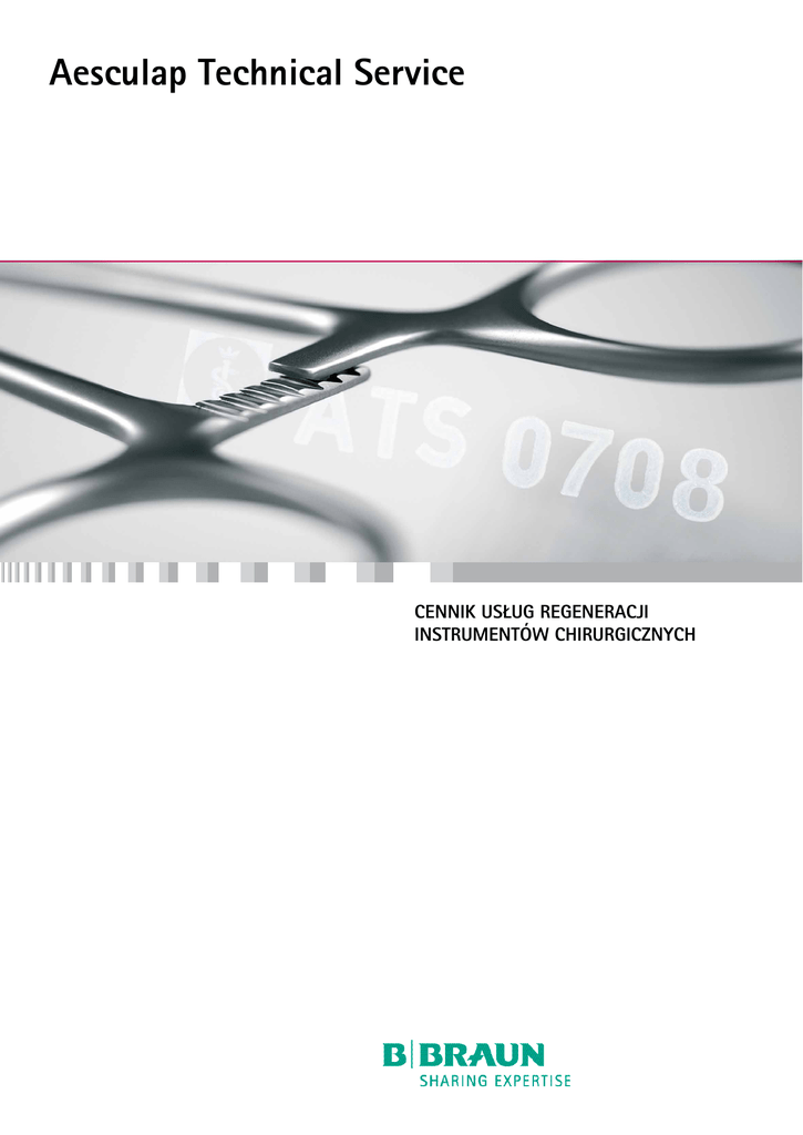 Aesculap Technical Service CENNIK USŁUG REGENERACJI INSTRUMENTÓW CHIRURGICZNYCH CENNIK USŁUG REGENERACJI NARZĘDZI CHIRURGICZNYCH Nazwa Cena Nazwa Cena Nazwa Cena Blaszki ortopedyczne 24,91 zł Kleszcze protetyczne ( do cięcia drutu ) 54,59 zł Pętla migdałkowa 48,76 zł Cążki do paznokci i skórek 47,70 zł Kleszczxe porodowe ( niklowane ) 72,61 zł Piłki 18,55 zł 72,61 zł Kleszczyki naczyn / atraumatyczne / 30,74 zł Piłki amputacyjne z powł.chromow 72,61 zł 55,12 zł Dermaton ręczny - regulacja Dermaton ręczny ( wym. elementów ) 25,97 zł Piły amputacyjne Dłuta plaskie 23,85 zł Klipsownica ( kolorowe ucha ) 42,40 zł Pincety /różne/ 18,55 zł Dłuta wklęsłe; osteotomy; raspatory 30,21 zł Klipsownica PL536R / PL510R 800,30 zł Pincety z twardą wkładką 77,38 zł Dłuta z wym rękojeści- duża ,,Peek’’ 78,44 zł Klipsownica PL536R / PL520R 890,40 zł Podważki do kości 36,57 zł Dłuta z wym rękojeści- mała ,,Peek ‚’ 51,94 zł Klipsownica PL503R 424,00 zł Pudełka do igieł 23,85 zł Drobne narzędzia stomatolog. 20,14 zł Klipsownica FB223R 276,13 zł Retraktor Dziurkacz do gumy (SP061-160-PS) 79,50 zł Kolo operacyjne ( dorob. detali ) 167,48 zł Rozsz. ginek. Hegar z pow. chromow 48,76 zł Dzwignia do korzeni 26,50 zł Kołowrotki 106,00 zł Rozszerzadła ginekolog.typ Hegar 23,32 zł Frezy do stawów, - /różne/ 42,40 zł Końcówki ssące Haczyk do piłki drutowej 30,21 zł Kombinerki LX17.. Haki /różne/ 30,21 zł Kosze narzędziowe / różne / Haki do gwozdzi Kirschnera 48,76 zł Łyżeczki kostne Haki z powł, chrom. niklow. 60,42 zł Miażdrze Jelitowe ( niklowane ) Igły Deschampa i podobne 23,85 zł Miażdze do chsastek Igły do biopsji Varessa 55,12 zł Igły do biopsji ( wymiana rurki ) Igły do płukań Imadła chirurg. z twar. wkładką / Mathieu 169,60 zł 182,32 zł 36,57 zł Rozwieracze do ran przegubowe 78,97 zł 30,21 zł Skalpele ; noże 18,55 zł Skrobaczki ginekolog. 32,86 zł 31,80 zł Sondy do żylaków 68,37 zł Miski nerkowe 24,38 zł Sondy kulkowe 23,85 zł 78,97 zł Mlotki 42,40 zł Sondy ze skalą 30,21 zł 23,85 zł Mlotki chromowane 47,70 zł Spinaki do serwet tup Bakchaus 23,85 zł Szczekorozwieracz / Roser / 48,76 zł 109,18 zł Imadło tw wkł z przekładnia 115,01 zł Klamry ortopedyczne Rozwieracze - Finochietto i podobne 51,94 zł 42,40 zł Kl protet do cięcia drutu - ortodoncja (z wym tw. wkł) 31,27 zł 121,37 zł Rozwieracze do ran Imadła chirurgiczne zwykłe Kl do cięcia gipsu ( Stille ) Kleszczyki naczyn / różne / 79,50 zł 109,18 zł 78,97 zł Narz.tylko do oznakowania 127,20 zł 115,01 zł 3,18 zł Narzędzia artroskopowe 86,92 zł Szczekorozwieracz / Whitehead / Narzędzia laparoskopowe - kleszczyki 72,61 zł Miażdże do chrząstek 36,57 zł Nasadka NF334R ( wym. śrub- szesciok) 78,97 zł Tacki do narzędzi chirurgicz. 76,32 zł Noże Bekmana 33,92 zł Talerz amputacyjny 82,68 zł Noże do mikrotomu 33,92 zł Talerz amputacyjny ( nowe det- ręk 2 i uchw 1szt 424,00 zł 139,92 zł 145,22 zł Klamry ortopedyczne ( dorobienie śrub i płytek ) 109,71 zł Noże sekcyjne,Belengera 30,21 zł Wiertarka ręczna (naprawa przekladni ) Kleszcz.przekł.do cięcia drutu 182,32 zł Nożyczki 26,50 zł Wiertarki ręczne 91,16 zł Nożyczki do gipsu 33,92 zł Wiertła 12,19 zł Kleszcze atraumatyczne 31,80 zł Kleszcze do ciecia drutu - LX164 219,42 zł Nożyczki preparacyjne 30,21 zł Wkrętaki kostne 36,57 zł Kleszcze do ciecia drutu Kirschnera 192,92 zł Nożyczki specjal- kątowe 36,57 zł Wzierniki dwułyżkowe - chromow. komplet 84,80 zł Kleszcze do cięcia drutu ,, Cebulka ‚’ chrom. 125,08 zł Nożyczki wieloczynnościowe 31,80 zł Wzierniki ginek Cusko z pow chromow 72,61 zł 46,64 zł Wzierniki ginekolog. 47,70 zł Wzierniki nosowe 36,57 zł 24,38 zł 31,80 zł Kleszcze do cięcia żeber 96,46 zł Nożyczki z twardą wkładką Kleszcze do przecinania obrączek 80,03 zł Odgryzacz z przekładnia Kleszcze do trzymania kości 115,01 zł 72,61 zł Odgryzacze kostne 72,61 zł Wzierniki uszne Kleszcze ekstrakcyjne 40,28 zł Odgryzacze kostne / Kerrisony / 84,80 zł Zaciski do naczyń Kleszcze ekstrakcyjne ( niklowane ) 54,59 zł Odgryzacze kostne / Rongeure / 94,34 zł Kleszcze jelitowe 30,21 zł Perforator do skóry 72,61 zł CENNIK REGENERACJI INSTRUMENTÓW-MIKROCHIRURGII dla szpitali Nazwa Cena Igły do płukań 18,55 zł Igły do usuwania ciała obcego 18,55 zł Imadla mik z zapadką 47,70 zł Imadla mikrochirurgiczne 36,57 zł Imadlo mikr z tw wkładką 109,18 zł Kleszcz laparosk do pobierania wycinków 72,61 zł Kleszczyki laparoskopowe 60,95 zł Kopystki, haczyki 21,73 zł Łyżeczka do gradówki 30,21 zł Nożyczki histerosk. z giętkim prowadzeniem 79,50 zł Nożyczki laparoskopowe 72,61 zł Nożyczki mikr - Vannas; Wecker 58,30 zł Nożyczki mikrchir. - sprężynowe 48,76 zł Nożyczki mikrochirurgiczne 36,57 zł Nożyki, skrobaki 21,73 zł Nóż Graefea 21,73 zł Osłona oka 21,20 zł Pincety mikrochir typ. COLIBER 42,40 zł Pincety mikrochirurgiczne 22,26 zł Rozszerzadło do kanalików 18,55 zł Rozwórka sprężysta 18,55 zł Rozwórki rozsuwna 23,85 zł Sczypczyki tęczówkowe 42,40 zł Szczypczyki do wkł soczewki 42,40 zł Uchwyt do skalpela - mikro 31,80 zł Uwaga: - ceny podane są w wartości netto - VAT 23,00% Ogólne zasady dla usługi Regeneracji: 1. Usługa Regeneracji obejmuje kompleksową naprawę instrumentów wraz z wymianą niezbędnych części i pełną obróbką powierzchni. Takie przeprowadzenie naprawy gwarantuje przywrócenie bezpieczeństwa i pełnej funkcjonalności narzędzi. 2. Na wykonaną usługę dajemy 6-cio miesięczną gwarancję. 3. Standardowy czas wykonania usługi to 14 dni po przesłaniu narzędzi wraz ze zleceniem lub po zaakceptowaniu wyceny na piśmie (faksem pod nr: 061 44 20 452 lub pocztą). 4. Zlecenie powinno zawierać: informację czy instrumenty zostały poddane procesom dezynfekcji, specyfikację ilościową (nazwę lub opis przedmiotu, i