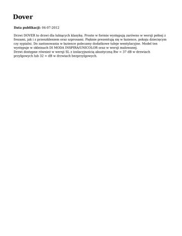 Data publikacji: 04-07-2012 Drzwi DOVER to drzwi dla