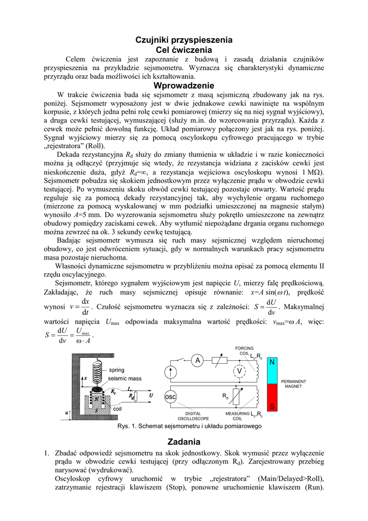Czujniki przyspieszenia Cel ćwiczenia Wprowadzenie Zadania