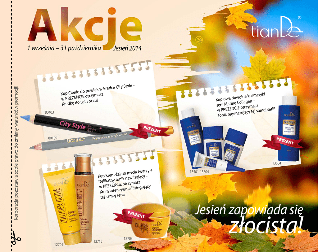 Korporacja pozostawia sobie prawo do zmiany warunków promocji! 1 września – 31 października Jesień 2014 City Style – k w kredce ie w o p o d Kup Cienie otrzymasz IE w PREZENC i oczu! st u o d kę d Kre etyki wolne kosm Kup dwa do llagen – Co serii Marine trzymasz IE o C EN EZ R P w mej serii! erujący tej sa Tonik regen 80403 80109 13504 twarzy + el do mycia y – Kup Krem-ż ąc nik nawilżaj Delikatny to trzymasz IE o w PREZENC nie liftingujący w sy n te in Krem rii! tej samej se 13501-13504 Jesień zapowiada się 12701 12712 12703 złocista! Jesień zapowiada się być urocza! 51406 51409 51401 51402 » ktywny tlen arz i szyję «A ogrono» – tw a n kę as in Kup M ę, «W a twarz i szyj lub Maskę n trzymasz dowolny IE o anDe! w PREZENC rii SPA Technologia Ti se ia yc m o d l że 12029 11325 12030 b s Master Her laster na no IE otrzymasz p cy ją za zc C Kup Oczys w PREZEN ający busowy» – Krem nawilż «Węgiel bam twarzy (aktywny) lub »! do «203040… Peeling-żel wabiu serii d je i am in z prote 54101 54102 10201-10203 Korporacja pozostawia sobie prawo do zmiany warunków promocji! 2340123403 arz maskę na tw olagenową arz przeciwko K : em st Sy aski Dual kę na tw Kup dwie m ktem żeńszenia + Mas IE otrzymasz C ra st EN ek EZ R z –wP na bazie i szyję po imprezie przeciw zmarszczkom oczu m o n liz ch u op kół czu do skóry wo óry wokół o Maskę do sk u lub Maskę z placentą ki! liw en 100% kolag kina i ekstraktem liści o re z tłuszczem my do ust wolne Balsa Kup dwa do EZENCIE otrzymasz PR TianDe – w -maskę TianDe! m re K dowolną ” serii „Rehab y kosmetyk Kup dowoln CIE otrzymasz jedną EN Bio – w PREZ Comfort do wyboru: ro P i ri czko maskę se ła” lub „Mle er „P i”, h Z g „Lin ropolis”! pszczele i p 52902, 52907, 52908 80112 50106-50112 orzechu – on na bazie den krem-balsam p am Sz p u K z je ruszka”, IE otrzymas w PREZENC it Energy do wyboru: „G u Fr do włosów „Papaja”! skawka” lub „Jojoba”, „Tru Jesień zapowiada się być bogata! 24302 20111-20114 ster do ciała Kup Fito-pla PREZENCIE –w «Donfeng» to-plaster Fi z as m zy tr o shen»! do ciała «Yao 30116 40103 41104 40104 tą i perłą + rąk z placen e Vera – o d m re K emy do rąk: owcy i Alo Kup dwa kr ekstraktem embriona z k Krem do rą z em węża! IE otrzymas w PREZENC krem do stóp z tłuszcz y zn Profilaktyc akowania Kup dwa op o ciała «Tegan» – d w ró st Fito-pla otrzymasz IE C EN EZ R wP zhuyfen»! do ciała «Ch Fito-plaster Jesień zapowiada się być aktywna! 30113 30114 Korporacja pozostawia sobie prawo do zmiany warunków promocji! 30119