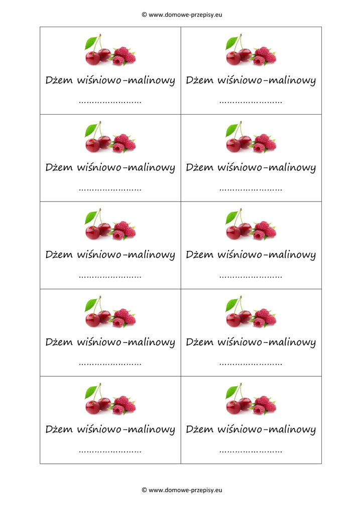 Etykiety na dżem wiśniowo-malinowy