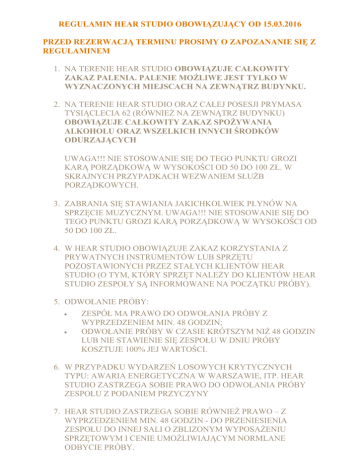 regulamin hear studio obowiązujący od 15.03.2016 przed