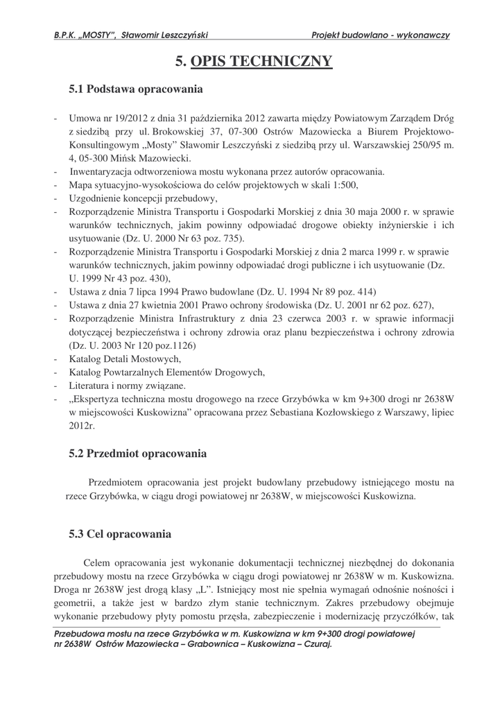 z siedzib przy ul. Brokowskiej 37, 07-300 Ostrów Mazowiecka a Biurem ProjektowoKonsultingowym „Mosty” Sławomir Leszczy ski z siedzib przy ul. Warszawskiej 250/95 m.
