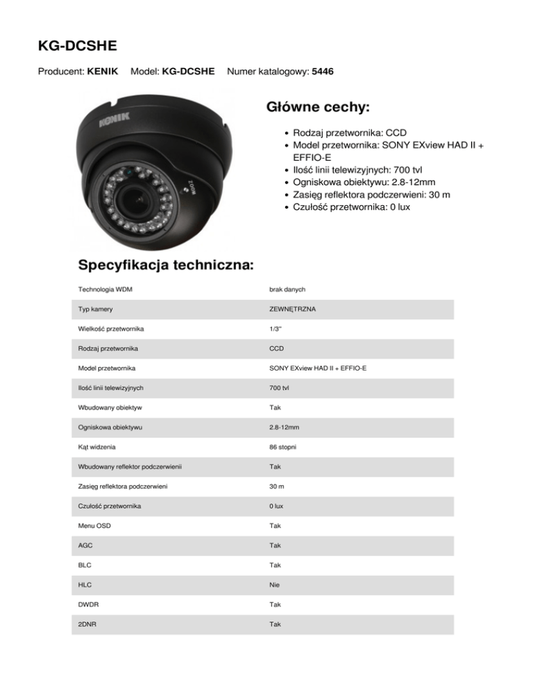 KG-DCSHE Główne cechy: Specyfikacja techniczna