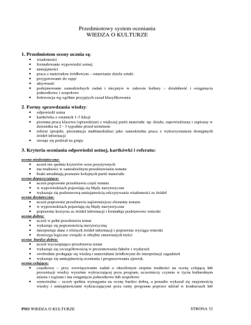 Przedmiotowy system oceniania WIEDZA O KULTURZE