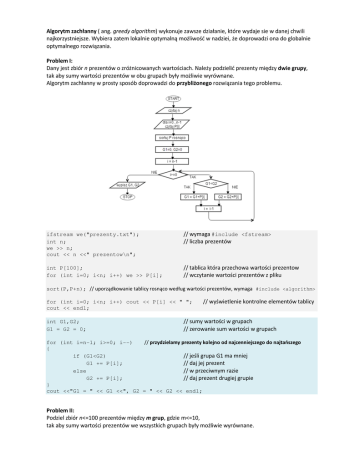 Algorytm zachłanny ( ang. greedy algorithm) wykonuje zawsze
