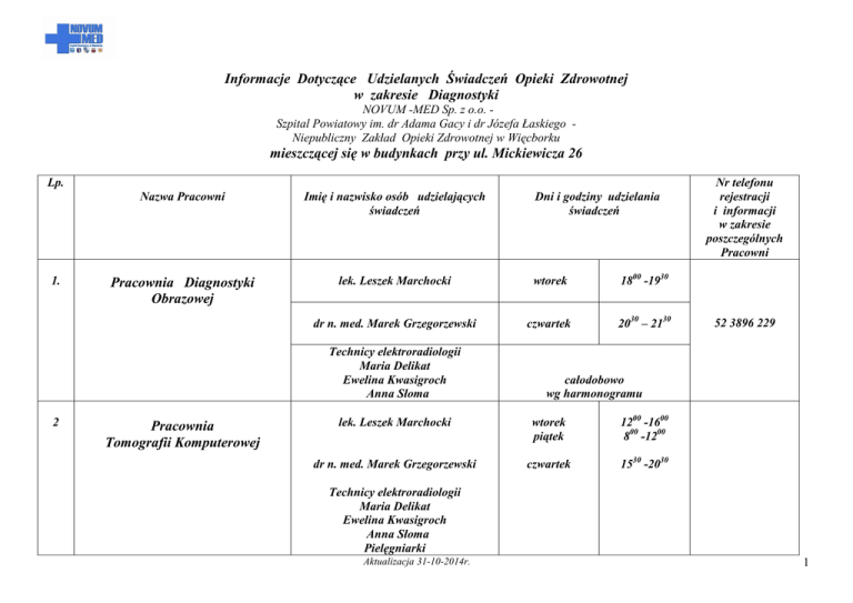 2014 pracownie diagnostyczne - BIP Szpital Powiatowy w Więcborku
