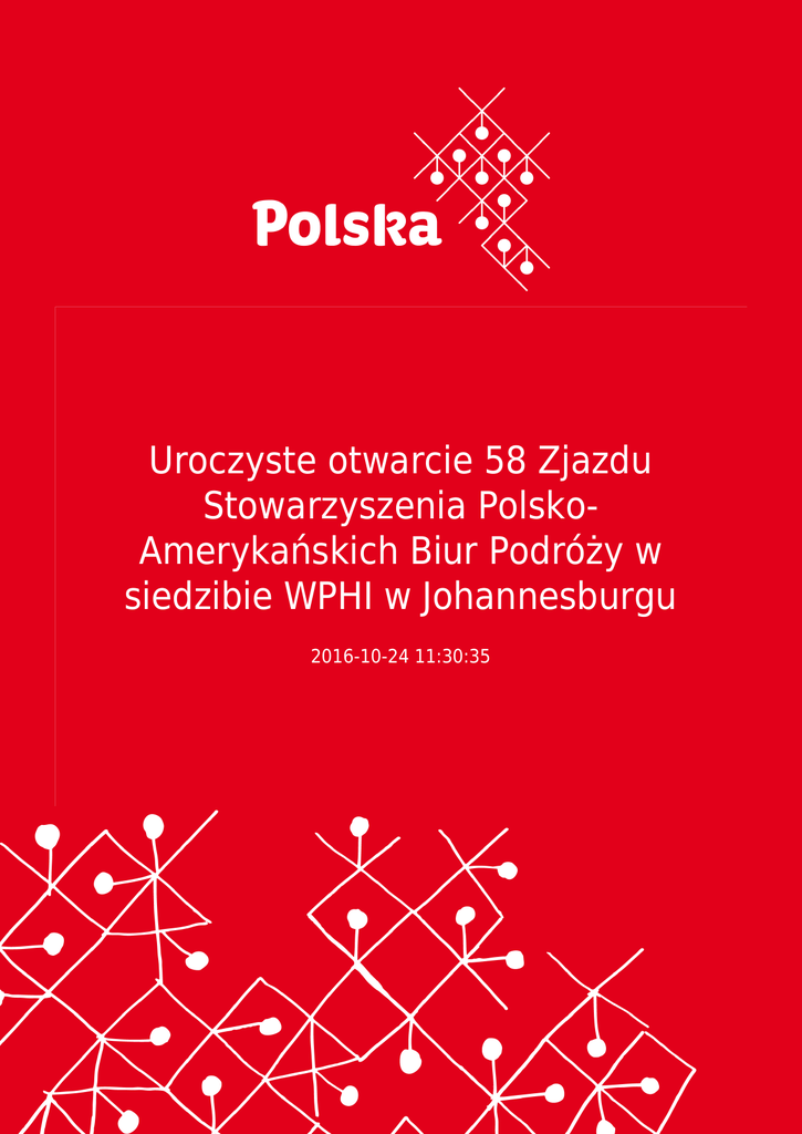 Uroczyste otwarcie 58 Zjazdu Stowarzyszenia PolskoAmerykańskich Biur Podróży w siedzibie WPHI w Johannesburgu 2016-10-24 11:30:35 2 Uroczyste otwarcie 58 Zjazdu Stowarzyszenia Polsko-Amerykańskich Biur Podróży w siedzibie WPHI w Johannesburgu W dniu 21 października 2016 r. w siedzibie WPHI w Johannesburgu odbyło się uroczyste otwarcie 58 Zjazdu Stowarzyszenia Polsko-Amerykańskich Biur Podróży - Society of Polish American Travel Agents (SPATA). Wśród przybyłych gości znaleźli się ambasador RP w Pretorii Anna Raduchowska Brochwicz, członek parlamentu południowo-afrykańskiego, minister turystyki w „gabinecie cieni” opozycyjnej partii Związek Demokratyczny (Democratic Alliance - DA) James Vos (tekst jego przemówienia w załączeniu), członek parlamentu południowoafrykańskiego również DA, reprezentujący Krajową Radę Prowincji Willem Faber, prezydent Rady Polskiej Organizacji Turystycznej Jan Korsak, doradca ministra w Kancelarii Premiera Adama Lipińskiego, Andrzej Pawluszek, prezes Unii Stowarzyszeń Polskich w Pretorii Jarek Jakuszko, prezes Zjednoczenia Polskiego w Johannesburgu Barbara Kukulska, oraz prezes Związku Polaków w Trójkącie Vaal, Ryszard Skoczyński. W uroczystości wzięło udział około 80 przedstawicieli biur podróży ze Stanów Zjednoczonych, na czele z panią prezydent SPATA Honoratą Pierwoła. Program pobytu amerykańskich gości w Południowej Afryce przygotowywało biuro podróży Sunny Tours, którego właścicielką jest Sylwia Polańczyk z Kapsztadu. Amerykańskich i południowoafrykańskich gości przywitał kierownik WPHI A. Krężel, a następnie głos zabrała p. ambasador A. Raduchowska-Brochwicz, która podkreśliła znaczenie wizyty polonijnych biur podróży ze Stanów Zjednoczonych dla rozwijania współpracy pomiędzy Polską, Południową Afryką i Stanami Zjednoczonymi w zakresie promocji walorów turystycznych tych krajów. Pan James Vos wskazał na znakomite możliwości RPA dla zwiększania znaczenia sektora turystycznego w tworzeniu nowych miejsc pracy oraz poprawy sytuacji ekonomicznej zwłaszcza czarnej ludności. Południowa Afryka dysponuje infrastrukturą turystyczną na najwyższym poziomie na kontynencie, nie ustępującą jakością najbardziej rozwiniętym krajom świata, z licznymi parkami narodowymi, z bardzo atrakcyjnymi gatunkami zwierząt, w tym słynna "wielka piątka" (lew, leopard, bawół, nosorożec i słoń), które można oglądać m.in. w największym w Afryce Parku Narodowym Krugera. Pani prezydent Pierwoła podziękowała WPHI za współorganizowanie tego wydarzenia, a także przybyłym gościom, podkreślając fakt działalności tej organizacji od 58 lat, mi.in. na rzecz promocji Polski za granicą. Pan Jan Korsak odczytał list ministra sportu i turystyki RP Witolda Bańki oraz prezesa POT dr Wojciecha Fedyka. Przewodniczący Rady POT podkreślił, iż wizyta SPATA w RPA stanowi mocny sygnał, iż południowa Afryka jest coraz ważniejszym kierunkiem wyjazdów turystycznych Polaków w Stanach Zjednoczonych, ale również turystów z kraju. Spotkanie w WPHI podkreśliło znaczenie Polski, jako ciekawego miejsca przyjazdów turystycznych. Udział Ambasadora RP oraz polityków południowoafrykańskich nadał temu wydarzeniu znaczenia także w kontekście budowania relacji bilateralnych. Wystąpienie przedstawiciela POT dało czytelny sygnał, iż SPATA to istotny partner w budowaniu globalnych powiązań w biznesie turystycznym, a powiązania Polsko-Amerykańsko-Południowoafrykańskie stają się nową możliwością również dla polskich biur podróży. 3