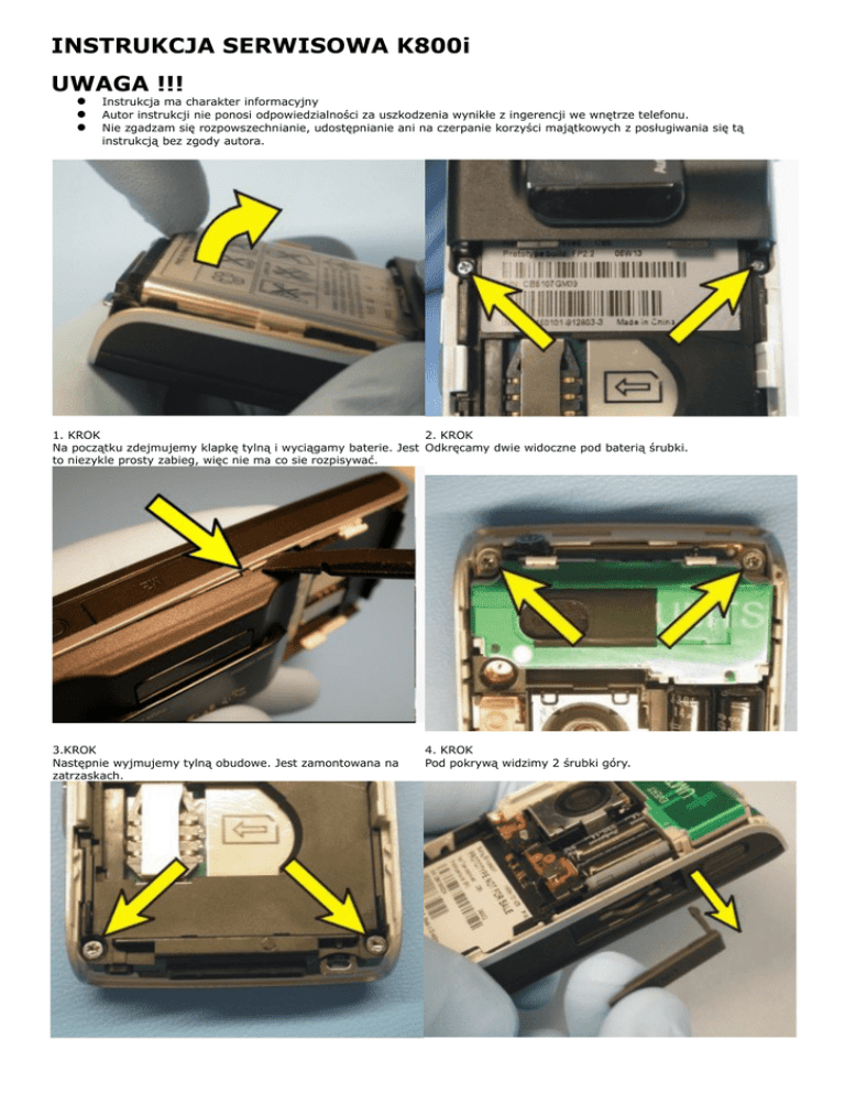INSTRUKCJA SERWISOWA K800i UWAGA !!!