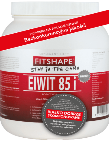 a n j y c ren u k n o k Bez ! ć ś o jak LSK A PO AN IER M E R P U! NK Y R IM Zastanawiasz się jak osiągn ąć wymarzo Aktywność sp ną sylwetkę? or ze źródeł sukc towa to tylko jedno esu, postaw na dobr zbilansowaną dietę, wybierz ze BIAŁKO DOB SKOMPONO RZE WANE Najlepsze wsp arcie organizmu w budowaniu sportowej sy lwetki. BIAŁKOWA MOC Wszystkie komórki i tkanki w ludzkim organizmie zbudowane są z białek. Dlatego tak ważną rolę odgrywają one w diecie każdego sportowca. Zawody, treningi, przygotowania do startów wymagają utrzymania organizmu w najwyższej formie. Dlatego Eiwit 85i wybierany jest przez zawodowców. Profesjonaliści wiedzą, że codzienne stosowanie Eiwit 85i bogatego w białka i wapń, zapewnia organizmowi przyrost i utrzymanie masy mięśniowej oraz prawidłowe funkcjonowanie mięśni. Eiwit 85i posiada certyfikat centrum antydopingowego przy Deutsche Sporthochschule w Kolonii, akredytowanego przez WADA (World Anti-Doping Agency), dlatego jest i może być bezpiecznie stosowana przez wszystkich, których podziwiamy na arenach sportowych. Z Eiwit 85i możliwe jest osiąganie najwyższych sportowych celów, wszędzie tam gdzie liczy się moc, szybkość i wytrzymałość. DLA KOGO EIWIT 85i? W zdrowym organizmie mięśnie stanowią około 40% masy ciała u mężczyzn i 35% u kobiet. To narząd czynny ruchu, który pracuje podczas każdej aktywności sportowej. Dlatego tak ważne jest, aby zapewnić im prawidłowe funkcjonowanie poprzez ćwiczenia, ale także poprzez dobrze zbilansowaną dietę, w której białko stanowić powinno jeden z najważniejszych składników. Dlatego nieważne czy biegasz, pływasz, jeździsz na rowerze, grasz w piłkę czy tenisa – wszędzie i zawsze muszą prawidłowo funkcjonować i pracować Twoje mięśnie. Zadbaj o nie. Postaw na Eiwit 85i. To dobrze skomponowana moc białka w jednej porcji. Przekonaj się, że sport to zdrowie! DLACZEGO EIWIT 85i? Fitshape Eiwit 85i to suplement diety zawierający kombinację wysokiej jakości białek, błonnika, węglowodanów, aminokwasów, witamin i minerałów. Codzienne stosowanie Eiwit 85i bogatego w białka i wapń, zapewnia organizmowi przyrost i utrzymanie masy mięśniowej oraz prawidłowe funkcjonowanie mięśni. Ponadto – dzięki zawartości witaminy C – stanowi wsparcie dla systemu immunologicznego m.in. podczas intensywnych ćwiczeń fizycznych i po nich, a dzięki wysokiej zawartości witaminy B6, przyczynia się do zmniejszenia uczucia zmęczenia i znużenia. Obecne w produkcie także witaminy z grupy B1, B2, B12, niacyna, kwas pantotenowy oraz biotyna przyczyniają się do utrzymania prawidłowego metabolizmu energetycznego. DOSTĘPNE SMAKI waniliowy, truskawkowy, bananowy, czekoladowy ZAWARTOŚĆ W PORCJI DZIENNEJ W jednej Jednostka porcji dziennej produktu (100 g) Wartość energetyczna % ZDS* 1541,40/367 kJ/kcal Tłuszcz 1,5 g w tym kwasy nasycone 1,0 g Węglowodany 5,5 g w tym cukry 4,7 g Błonnik 1,7 g Białko 81,9 g Sól 0,28 g EIWIT – ZALECANA PORCJA DO SPOŻYCIA NIEZBĘDNA DLA UZYSKANIA KORZYSTNEGO DZIAŁANIA Witaminy: Witamina C 26 mg 32,50 Niacyna 5,28 mg 33 Kwas pantotenowy 1,98 mg 33 Witamina B2 0,46 mg 32,85 Witamina B6 0,46 mg 32,85 Witamina B1 0,36 mg 32,72 Kwas foliowy 66 μg 33 Biotyna 16,5 μg 33 Witamina B12 1,25 μg 50 Witamina E 3,96 mg 33 1000 mg 125 Składniki mineralne: Wapń * % ZDS – % zalecanego dziennego spożycia Skład dotyczy smaków: waniliowego, truskawkowego i bananowego. Preparat nie może być stosowany jako substytut zróżnicowanej diety i zdrowego stylu życia. Należy pamiętać, że dla osiągnięcia korzystnych rezultatów, preparat powinien być spożywany w ramach zróżnicowanego i zrównoważonego sposobu żywienia oraz zdrowego trybu życia. Przechowywać w sposób niedostępny dla małych dzieci. 2 napoje dziennie (zalecane: 1 napój np. po treningu i 1 napój na godzinę przed snem). Nie należy przekraczać zalecanej porcji do spożycia w ciągu dnia. SPOSÓB UŻYCIA Przygotowanie 1 porcji napoju: 5 miarek proszku (50 g) Eiwit 85i rozpuścić w 300-350 ml mleka lub wody, dobrze wymieszać. SKŁADNIKI Kazeinian wapnia (pochodna mleka), koncentrat białka serwatkowego 80 (zawiera laktozę), białko jaja w proszku, fruktooligosacharydy (FOS), palatinose® izomaltuloza*, fruktoza, aromat, substancja zagęszczająca (guma ksantanowa), witaminy (kwas askorbinowy, octan DL-alfa-tokoferylu, amid kwasu nikotynowego, D-pantotenian wapnia, chlorowodorek pirydoksyny, monoazotan tiaminy, ryboflawina, kwas foliowy, biotyna), substancje słodzące (cyklaminian sodu, sacharyna). * Izomaltuloza jest źródłem glukozy i fruktozy. Czy wiesz, że... na 16 milionów Holendrów aż ponad 4 miliony osób jest zapisanych do klubów sportowych i jest na co dzień aktywnych fizycznie? FITSHAPE TO NAJWIĘKSZY HOLENDERSKI PRODUCENT WYSOKIEJ JAKOŚCI SUPLEMENTÓW DIETY DLA SPORTOWCÓW ZAWODOWYCH ORAZ OSÓB AKTYWNYCH FIZYCZNIE. Twórcą Fitshape jest Tshen La Ling – kiedyś wybitny piłkarz holenderski, a dziś właściciel jednej z europejskich drużyn piłkarskich i twórca indywidualnych programów dietetycznych dla sportowców z pierwszych stron gazet. To jeden z pionierów profesjonalnej suplementacji sportowców. Jako piłkarz, który przez wiele lat aktywnie uprawiał tę dyscyplinę sportu, wie doskonale na jakie obciążenia narażony jest organizm sportowca. Jego celem było stworzenie skutecznych odżywek i suplementów, które bezpiecznie będą wspomagać organizm podczas wysiłku i regeneracji. Holendrzy to potęga sportowa – wystarczy wspomnieć sukcesy piłkarskiej drużyny narodowej, olimpijskie zło- ta w hokeju na trawie, kilkanaście złotych medali olimpijskich w łyżwiarstwie szybkim, czy światowe sukcesy w sportach walki, w tym K-1. Rafael van der Vaart – wielka gwiazda holenderskiej drużyny piłkarskiej oraz były pomocnik Realu Madryt, Ajaxu Amsterdam, a dziś Hamburgera SV, tak mówi o odżywkach Fitsh