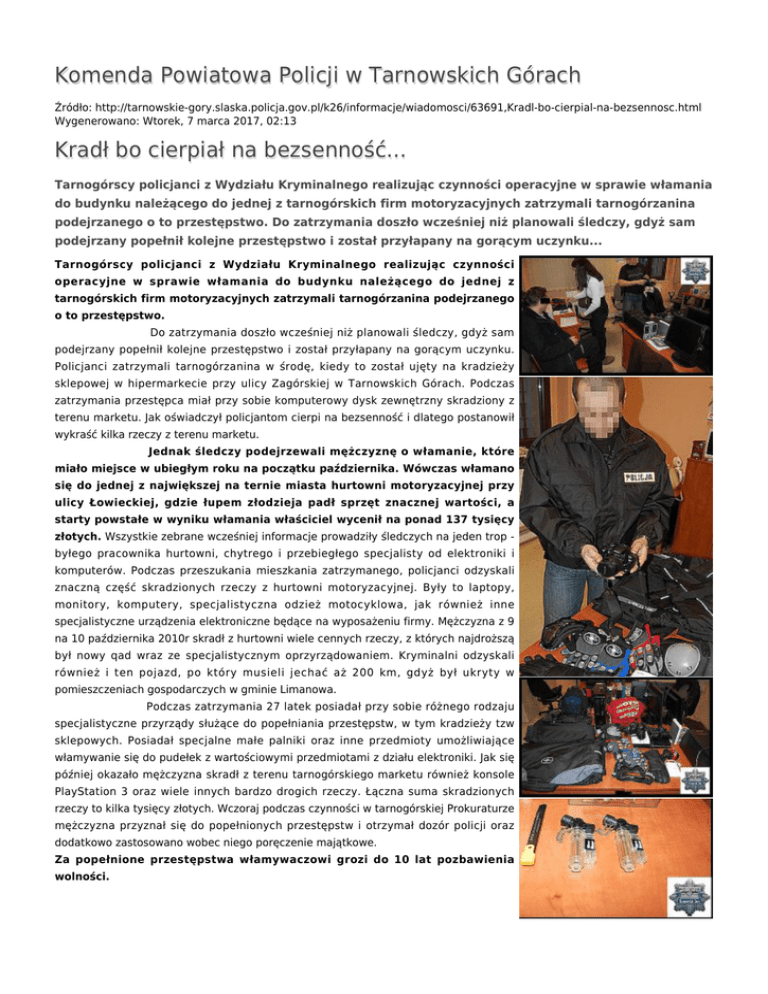 Generuj PDF - Komenda Powiatowa Policji w Tarnowskich Górach