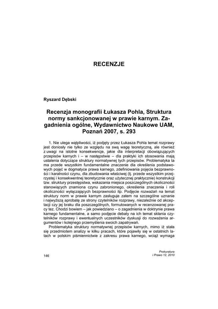 RECENZJE Recenzja monografii Łukasza Pohla, Struktura normy