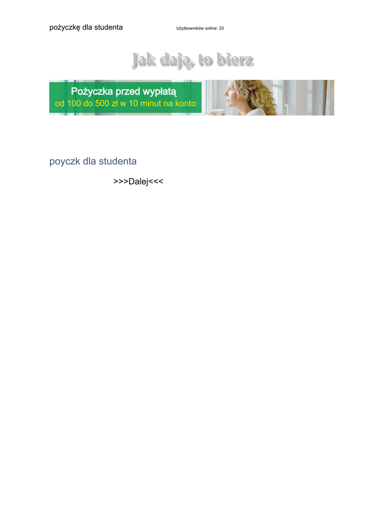 pożyczkę dla studenta_____________Użytkowników online: 33 poyczk dla studenta _______________>>>Dalej<<< Na program konceru składały się najpiękniejsze pieśni wybrane przez Macieja Fortunę z 30 tomów dzieła "Lud" Oskara Kolberga, jak i kompozycje własne inspirowane znanymi motywami, głównie z Wielkopolski. Wszyscy są pod dużym wrażeniem tego jak funkcjonuje CTMiT, jak są przyjmowani przez kutnowską publiczność. W banku pożyczka na pewno tańsza lecz obecnie jest bardzo duża grupa ludzi którzy w bankach nie mają szans na pożyczkę. Iście królewskie powitanie zgotowano wczorajszego popołudnia młodym baseballistom, którzy zawitali do miasta róż na Mistrzostwa Regionu Europy i Afryki w kategorii wiekowej 11-12. Zarząd Spółdzielni zastrzega sobie możliwość ograniczenia, odstąpienia lub unieważnienia przetargu bez podania przyczyny. Na witrynie kredyt na oświadczenie zauważysz bardzo dużo informacji na temat pożyczek gotówkowych więc jeśli jesteś nim zainteresowany to zapraszam serdecznie. Suma obliczana jest na podstawie wpływów na rachunek oraz historii jego prowadzenia i może wynieść nawet kilkadziesiąt tysięcy złotych. W swoim pierwszym, przedsezonowym spotkaniu piłkarze KS-u Sand Bus Kutno zmierzyli się na stadionie przy ulicy Kościuszki z brazylijskim Brazil Soccer Academy. Mariusz Sikora oraz Joanna Brylska życzyli uczestnikom turnieju jak najlepszych wyników, podkreślając wartości, jakie niesie ze sobą duch sportowej rywalizacji. Znany stylista i bloger -Adam Szymczak, pochodzący z Kutna, pojawił się ostatnio jako gość programu śniadaniowego „Pytanie na śniadanie” . Dzieło Kolberga do dnia dzisiejszego służy za niewyczerpane, często i jedyne źródło wiedzy o kulturze naszych przodków. Samych sukcesów młodym sportowcom życzyła także dyrektor Małej Ligi w Kutnie, Beata Kaszuba-Baker.- Zwycięzca tego turnieju będzie reprezentował Region Europy i Afryki na Mistrzostwach Świata w Williamsport. Staszica 21.Wygrywający przetarg zobowiązany jest ponieść wszelkie koszty związane z zawarciem umowy. W pierwszym przypadku są one skierowane głównie do tych osób, które mają już własne rachunki rozliczeniowe w konkretnych bankach, w drugim może otrzymać je z kolei praktycznie każdy spełniający minimalne wymagania. 17 przed magistratem rozpoczęła się oficjalna ceremonia, podczas której gości powitali: dyrektor Małej Ligi w Kutnie - Beata Kaszuba-Baker, wiceprzewodniczący Rady Miasta - Mariusz Sikora, a także rzecznik magistratu - Joanna Brylska. 19:00 w Centrum Teatru, Muzyki i Tańca odbył się drugi koncert w ramach II Festiwalu Świat Muzyki, Muzyka Świata. Ogromnym zainteresowaniem cieszył się pokaz walki pomiędzy księciem Polan - Mieszkiem I a margrabim Marchii Łużyckiej Hodo. Obok legionistów można spotkać samurajów, Indian, rycerzy oraz żołnierzy z frontów I i II wojny światowej. Spotkać wspaniałych, choć mało znanych szerokiemu odbiorcy, muzyków z wielkim talentem i pasją. Co więcej, mieszkańcy mieli okazję podziwiać aż 4 czołgi: francuskie czołgi z okresu I Wojny Światowej Renault FT1 oraz Panzerkampfwagen II, czyli niemiecki czołg lekki, który do 1941 roku był podstawowym czołgiem III Rzeszy. Zlot Grup Rekonstrukcji Historycznych "Odyseja Historyczna" Kutno to impreza, która powstała w efekcie próby realizacji własnych marzeń przez zapaleńców skupionych w Stowarzyszeniu Historycznym Pułk 37. Teraz z tej opcji korzysta coraz więcej Polaków, który doceniają komfort i po wsparcie finansowe nie chcą specjalnie wybierać się do placówki bankowej czy pozabankowej. Członkom Stowarzyszenia przyświecała idea, aby w samym środku Polski, w Kutnie - niewielkim mieście leżącym na skrzyżowaniu dróg, którymi wędrowały armie polskie, napoleońskie, rosyjskie i niemieckie, w mieście, którego nie ominęła i nie oszczędziła historia- stworzyć miejsce regularnych spotkań pasjonatów historii- tej dawnej i tej całkiem współczesnej. Walka, która rozegrała się 24 czerwca 972 roku pod Cedynią przykuła uwagę widzów, którzy mieli także okazję "dokopać" rywalowi Mieszka I. Szybowcowych Mistrzostwach Europy w miejscowości Osceny na Węgrzech, i w klasyfikacji generalnej po czterech konkurencjach zajmuje zaszczytne pierwsze miejsce. W przypadku, gdy pożyczka bankowa a takiej formie nie jest dostępna, można sprawdzić oferty pozabankowe. Zarówno maluchy, młodzież, jak i nieco starsi, którzy przybyli dziś na plac Piłsudskiego nie mogli narzekać na nudę i każdy z nich znalazł coś dla siebie. Temat wywiadu dotyczył wyprzedaży i tego, na co trzeba zwrócić uwagę podczas robienia zakupów. Zatem pożyczki internetowe to wygodna propozycja dla osób, które chcą uzyskać szybkie wsparcie finansowe. Receptą na tę komunikatywnośś stało sie w tym przypadku całkowite przyzwolenie na róznorodność i łączenie stylistyk w obrębie jednego projektu, dzięki czemu muzyka zespołu stała się prawidzwie uniwersalna. Różnica w kosztach jest bardzo duża, więc jeżeli nie musimy przepłacać, to raczej składajmy wnioski w bankach, w których mamy rachunki. Na początek można uzyskać maksymalnie do 1500 złotych, potem kwota ta podwyższa się do około 2500 złotych dla stałych klientów. Rozmawiamy z Krzysztofem Ryzlakiem - pomysłodawcą, organizatorem całego wydarzenia oraz kierownikiem kutnowskiego Centrum Teatru, Muzyki i Tańca. Już po raz szósty Kutno stało się gospodarzem Zlotu Grup Rekonstrukcji Historycznych "Odyseja Historyczna". W ich przypadku wystarczy w najbardziej liberalnej opcji tylko dowód osobisty, konto w polskim banku oraz telefon komórkowy (do weryfikacji). Na portalach finansowych można sprawdzić ich rankingi, aby dowiedzieć się, w których warunki są najbardziej atrakcyjne. Imprezy, która daje okazję członkom grup rekonstrukcyjnych lepiej poznać się nawzajem i s