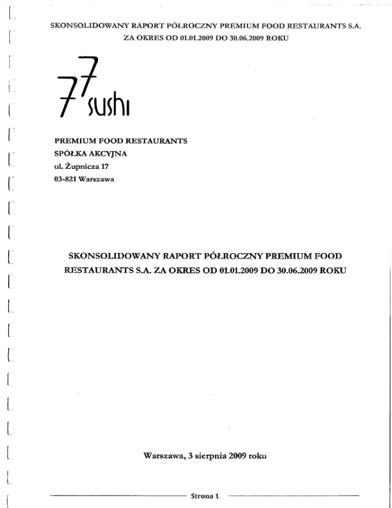 RESTAURANTS S.A. ZA OKRES OD 01.01.2009 DO 30.06.2009 ROKU