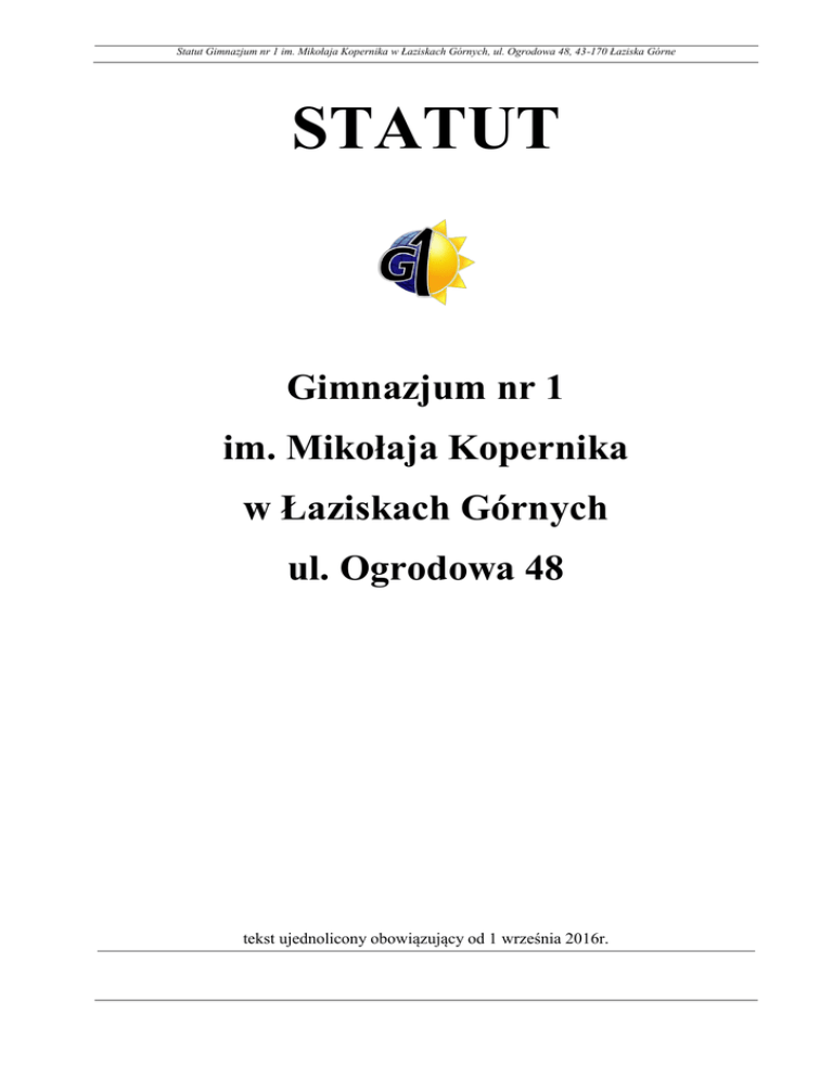 STATUT - Gimnazjum nr 1 w Łaziskach Górnych