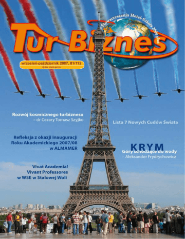 Centrum Zdrowia Mermed jest nowoczesną placówką medyczną, która opiekuje się ponad 12 000 pacjentów. Od wielu lat świadczymy usługi medyczne dla pacjentów komercyjnych i zakładów pracy w zakresie różnych specjalności: od porad lekarzy medycyny pracy po konsultacje lekarzy różnych specjalności. Każdy z naszych pracowników podchodzi z wielką powagą do problemów zdrowotnych każdego pacjenta, co różni nas od innych placówek. W Centrum Zdrowia Mermed istnieje możliwość wykonania pełnego zakresu badań laboratoryjnych i diagnostycznych, m.in. EKG, spirometria, USG, rentgen, rezonans magnetyczny, tomografia komputerowa, na podstawie podpisanych umów z innymi współpracującymi z nami placówkami medycznymi. Specjalnie w celu ułatwienia leczenia została przygotowane i uruchomiona dla naszych pacjentów poradnia fizjoterapeutyczna, świadcząca usługi w zakresie: kinezyterapii (leczenie ruchem), fizykoterapii (leczenie fizykalne), terapii manualnej i masażu. Zaletą naszej placówki jest m.in. dogodna lokalizacja, w samym centrum Warszawy, w doskonałym węźle komunikacyjnym z bardzo łatwym dojazdem. MEDYCYNA PRACY Centrum Zdrowia MERMED świadczy kompleksowe usługi dla zakładów pracy, przy czym oferta zostaje przygotowana pod kątem potrzeb pracowników. Sprawowanie profilaktycznej opieki zdrowotnej nad pracującymi to m.in. wykonywanie badań wstępnych, okresowych i kontrolnych oraz monitorowanie stanu zdrowia. W obecnej chwili zakłady pracy mogą skorzystać z następujących pakietów: – pakiet medycyny pracy, – pakiet rozszerzony, – pakiet rozszerzony rodzinny plus. PROFILAKTYKA Wiele miejsca poświęcamy profilaktyce i diagnostyce chorób, która jest bardzo istotna w dzisiejszych czasach. Profilaktyka zdrowotna obejmuje konsultacje u lekarza specjalisty, który na podstawie wywiadu i stylu życia decyduje o konieczności przeprowadzenia odpowiednich badań profilaktycznych. Systematycznie zapraszamy naszych pacjentów na badania profilaktyczne, przy czym kładziemy szczególnie duży nacisk na badania młodych i dojrzałych kobiet w kierunku profilaktyki raka piersi i raka szyjki macicy. Mężczyzn powyżej 40 roku życia zapraszamy na regularne profilaktyczne badania poziomu cholesterolu, poziomu PSA oraz konsultacje kardiologiczne i urologiczne. Lekarze specjaliści: Alergolog Chirurg Diabetolog Dermatolog Ginekolog – Endokrynolog Internista Kardiolog Laryngolog Medycyna pracy Neurolog Okulista Ortopeda – Traumatolog Proktolog Psychiatra Rehabilitacja Reumatolog Stomatolog USG Oferujemy usługi: Analiz specjalistycznych Badań laboratoryjnych Medycyny pracy Badań diagnostycznych – USG, EKG – Urodynamika – Spirometria Szczepień ochronnych Umów z zakładami pracy Niepubliczny Zakład Opieki Zdrowotnej Centrum Zdrowia MERMED 00-863 Warszawa, ul. Grzybowska 32 poniedziałek–piątek 8.00–20.00 tel. 022 654 75 74, faks 022 654 74 71 www.mermed.pl [email protected] Ziściła się idea lansowana przez „Tur Biznes” od 10 lat Wspólna promocja Polski i Ukrainy N Rosji. W ramach prac Grupy prowadzona i aktualizowana jest strona internetowa. asza redakcja, jako pierwsza i jedyna w kraju, od 1997 r. lansowała ideę wspólnej promocji, na arenie międzynarodowej (np. w ramach targów turystycznych w Berlinie, Londynie czy w Tokio), razem z takimi państwami jak Białoruś, Ukraina, Słowacja, wspólnych atrakcji turystycznych jakimi są np. podzielone naszymi granicami: Puszcza Białowieska, Bieszczady, Karpaty, Pieniny, Tatry. Natomiast w ramach Grupy Wyszehradzkiej V-4 (Polska, Czechy, Słowacja i Węgry) całego regionu Europy Środkowej. Popierali także tę koncepcję, w wywiadach nam udzielonych, pełniący swe misje w Polsce ambasadorzy: Białorusi – Mikołaj Kreczka, Ukrainy – dr Petro Sardaczuk, oraz jego późniejszy następca Dmytro Pawłyczko, Słowacji – Ondrej Nemcok oraz jego następczyni Magdaléna Vášáryová. Ideę tę podzielał nawet Leonidas Chrysanthopoulos, ambasador Grecji w Polsce, która w wyniku swojej inicjatywy na forum międzynarodowym przyczyniła się do rozwoju turystyki miejskiej w postaci powołania instytucji Kulturalnych Stolic Europy. W ich to przypadku UE w 60 proc. finansuje działania promujące wskazane miasta – KSE. Np. w 1997 r. stolicą taką ogłoszono greckie Saloniki. Pod wpływem opisanej akcji „Tur Biznesu” na mocy podpisanego w dniu 4 kwietnia 2002 r. protokołu (do umowy dotyczącej działania powstałej 15 lutego 1991 r. Grupy Wyszehradzkiej) o współpracy pomiędzy Ministerstwem Rozwoju Regionalnego Czech, Ministerstwem Spraw Gospodarczych Węgier, Ministerstwem Gospodarki Polski i Ministerstwem Gospodarki Słowacji, stworzone zostały podstawy do współdziałania państw Grupy V-4 w sferze współtworzenia i promocji wspólnego dla nich produktu turystycznego. W ślad za kolejnym, podpisanym w Budapeszcie w dniu 12 lutego 2003 r. protokołem z udziałem ministrów odpowiedzialnych za turystykę krajów Grupy V-4, zorganizowano spotkanie grupy roboczej przedstawicieli Narodowych Organizacji Turystycznych i posiedzenie plenarne ministrów odpowiedzialnych za turystykę. Wynikiem tego spotkania było wyznaczenie rynków, na których wspólna promocja krajów V-4 będzie realizowana. Rynki objęte współpracą Grupy V-4 to Japonia, Chiny, USA, a od roku 2007 także część azjatycka TurBiznes / Wrzesień-Październik 2007 Protokoły potwierdzające gotowość państw Grupy Wyszehradzkiej do wspólnej promocji oferty turystycznej oraz przyjmujące plan działań w tym zakresie, w kolejnych latach, były podpisywane w Mariańskich Laznach 15–16 września 2004, w Zakopanem 7–9 marca 2005, w Budapeszcie 7–9 lutego 2006. Do idei wspólnej promocji turystyki przystąpiła Ukraina Z nieukrywaną przyjemnością informujemy, że podczas tegorocznych XV Międzynarodowych Targów Turystycznych TT Warsaw Tour & Travel nastąpiła uroczysta wymiana listów intencyjnych