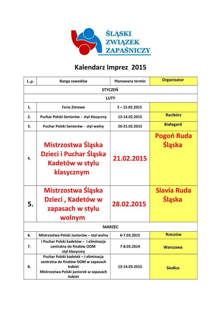Kalendarz Imprez 2015 - ZKS "Slavia" Ruda Śląska