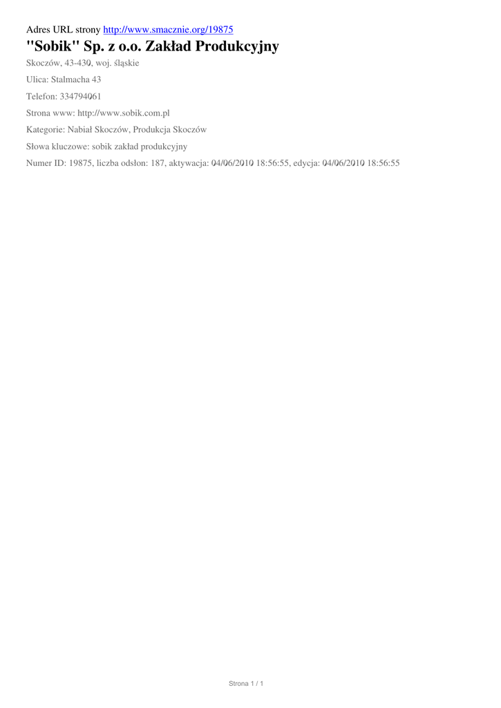 "Sobik" Sp. z oo Zaklad Produkcyjny, Skoczow