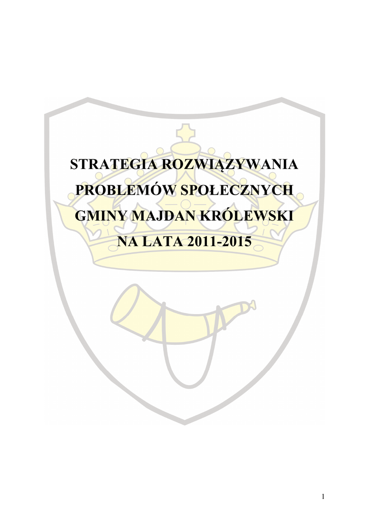 STRATEGIA ROZWIĄZYWANIA PROBLEMÓW SPOŁECZNYCH GMINY MAJDAN KRÓLEWSKI NA LATA 2011-2015 1 Spis treści I Wstęp.................................................................................................................... 4 1.1. Podstawy prawne opracowania strategii. ........................................................................ 7 1.2. Zgodność strategii z innymi dokumentami planistycznymi. ........................................... 9 II Charakterystyka Gminy Majdan Królewski. ........................................................ 12 2.1. Struktura terytorialna..................................................................................................... 12 2.2. Struktura demograficzna ............................................................................................... 14 2.3. Przyrost naturalny ......................................................................................................... 16 2.4. Zjawisko migracji zewnętrznej i wewnętrznej. ............................................................. 17 III Infrastruktura polityki społecznej z Gminie Majdan Królewski............................ 19 3.1. Oświata .......................................................................................................................... 19 3.2. Kultura i sport................................................................................................................ 21 3.3. Ochrona zdrowia. .......................................................................................................... 22 3.4. Pomoc społeczna ........................................................................................................... 23 3.5. Organizacje pozarządowe. ............................................................................................ 24 IV Diagnoza problemów społecznych w Gminie Majdan Królewski według danych OPS. ...................................................................................................................... 26 4.1. Zjawisko ubóstwa. ......................................................................................................... 31 4.1.1. Zjawisko dziedziczenia ubóstwa. ........................................................................... 32 4.2. Potrzeba ochrony macierzyństwa. ................................................................................. 34 4.2.1. Wielodzietność. ...................................................................................................... 35 4.2.2. Rodziny niepełne. ................................................................................................... 36 4.2.3. Problemy rodzin: opiekuńczo-wychowawcze, uzależnień i przemocy w rodzinie.37 4.3. Zjawisko bezrobocia. .................................................................................................... 41 4.4. Zjawisko niepełnosprawności lub długotrwałej choroby. ............................................. 45 4.5. Problemy osób starszych. .............................................................................................. 48 4.6. Problemy w przystosowaniu do życia po opuszczeniu zakładu karnego. ..................... 49 4.7. Zjawisko bezdomności. ................................................................................................. 50 4.8. Zdarzenia losowe, sytuacje kryzysowe, klęski żywiołowe. .......................................... 51 4.9. Mapa intensywności problemów społecznych w poszczególnych miejscowościach gminy. ................................................................................................................................... 52 V Ankieta OPS „Problemy i potrzeby społeczne mieszkańców gminy Majdan Królewski” ............................................................................................................ 59 5.1. Problemy społeczne mieszkańców ............................................................................... 65 5.2. Przyczyny powstania ubóstwa ...................................................................................... 69 5.3. Uzależnienia .................................................................................................................. 71 5.4. Przemoc ......................................................................................................................... 73 5.5. Niepełnosprawność ....................................................................................................... 75 5.6. Perspektywy rozwoju mieszkańców ............................................................................. 77 2 5.6.1. Osób starszych ........................................................................................................ 77 5.6.2. Ludzi młodych ........................................................................................................ 80 5.7. Infrastruktura komunikacyjna. ...................................................................................... 83 5.7.1. Komunikacja społeczna – dialog między mieszkańcami a władzami lokalnymi, przekaz informacji. ........................................................................................................... 83 5.7.2. Dostęp do mediów ( telewizji, radia, telefonu, Internetu). ..................................... 85 5.7.3. Komunikacja – transport ........................................................................................ 86 5.8. Edukacja ........................................................................................................................ 87 5.9. Ocena działania instytucji publicznych ......................................................................... 90 5.9.1. Ocena działania Gminy .......................................................................................... 90 5.9.2. Ocena działania Ośrodka Pomocy społecznej ...............................................