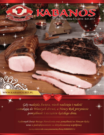Promocja trwa: 9.12.2016 - 8.01.2017 Boczek wędzony gotowany Kiełbasa biała parzona Boczek upieczony od Kojsa Boczek z wędzarni Kojsa WYJĄTKOWO SMACZNA Kiełbasa dla chłopa Kiełbasa wiejska pieczona NOW OŚĆ Kiełbasa krakowska podsuszana Kiełbasa wieprzowa jak ze wsi MUSISZ SPRÓBOWAĆ! Piecuch Kiełbasa z góralskiej spiżarni Pasztet z żurawiną Kiełbasa wieprzowa pieczona Szynka śnieżna Filet z indyka wędzony NOW OŚĆ Kiełbasa drobiowa jak ze wsi Kiełbasa żywiecka podsuszana Schab okopcony Pasztet z indyka pieczony Filet z indyka pieczony Szynka od górali Schab cygański Szynka okopcona NOW OŚĆ Szynka dworska Schab jak ze wsi Szynka dla domu Szynka z komina Szynka jak ze wsi Kabanos wieprzowy Szynka zapiekana Szynka harnasia Kabanos drobiowo wieprzowy DOMOWY SMAK! SMACZNEGO!