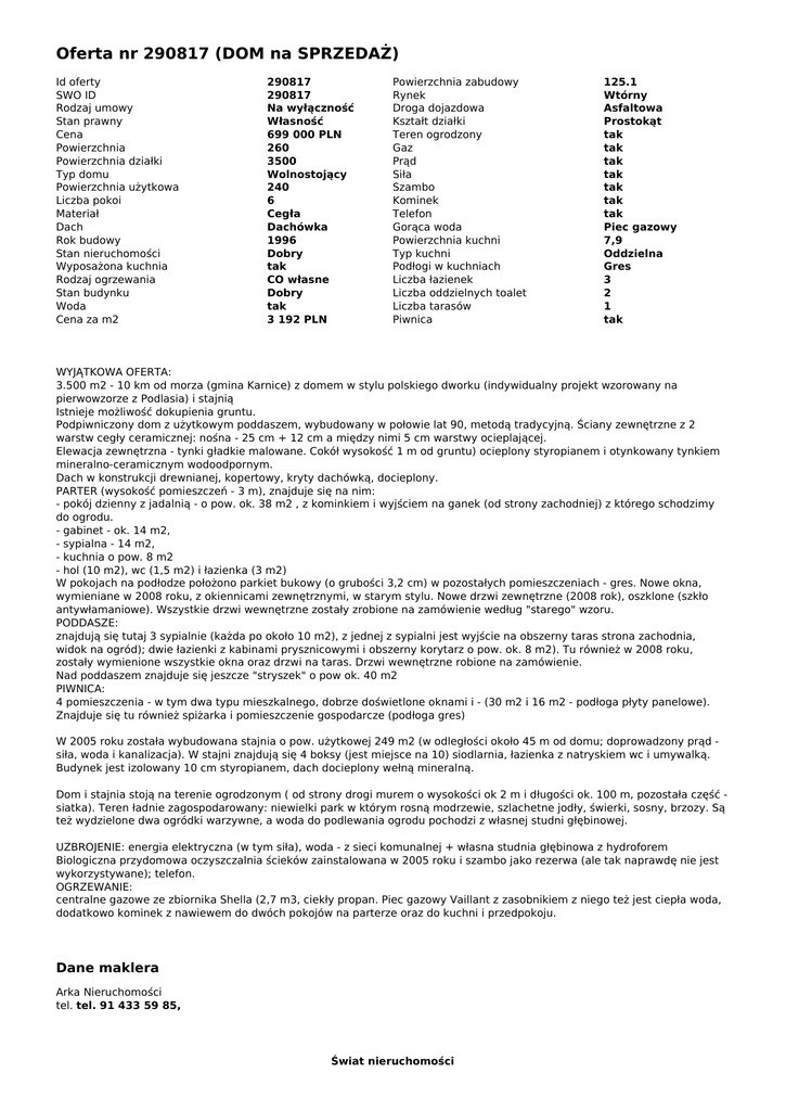 Oferta nr 290817 (DOM na SPRZEDAŻ)
