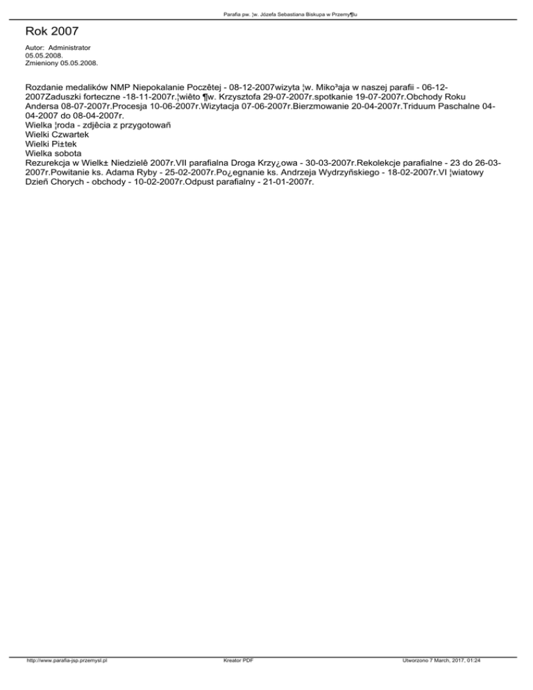 Rok 2007 - Parafia pw. Św. Józefa Sebastiana Biskupa w Przemyślu