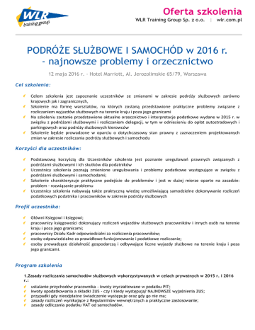 Oferta szkolenia PODRÓŻE SŁUŻBOWE I SAMOCHÓD w 2016 r