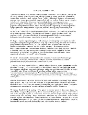 Odezwa ekologiczna organizatora Marszu Śledzia.