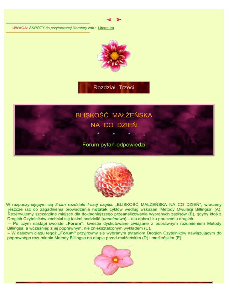 W rozpoczynającym się 3-cim rozdziale I-szej części: „BLISKOŚĆ MAŁŻEŃSKA NA CO DZIEŃ”, wracamy