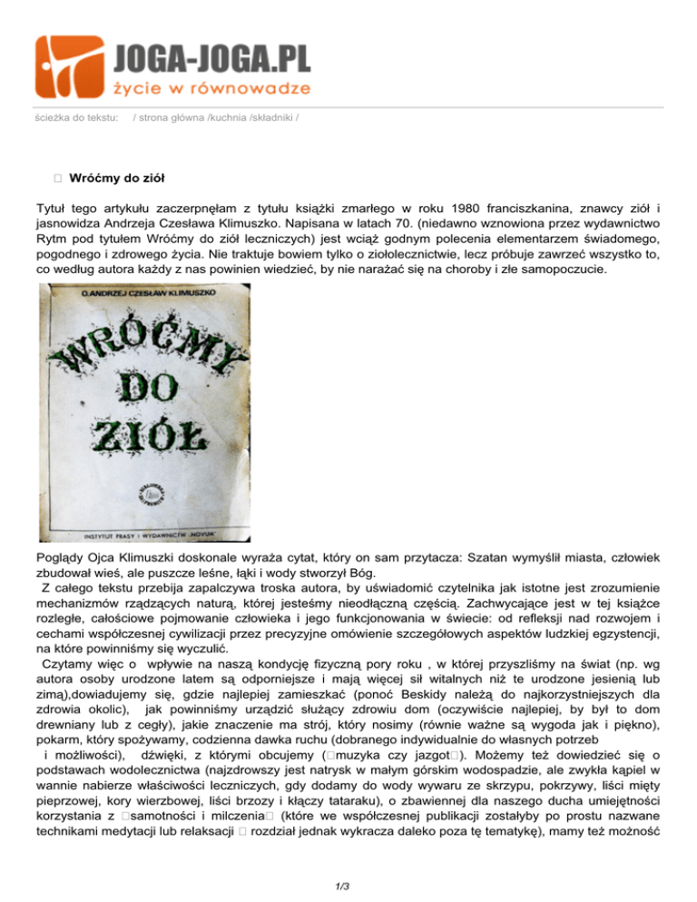 Wróćmy do ziół Tytuł tego artykułu zaczerpnęłam z - Joga-Joga