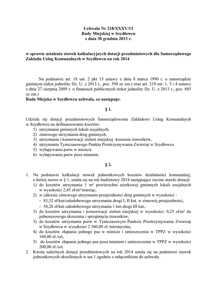 Uchwała Nr 218-XXXV-13 z dnia 30 grudnia 2013 r. w spr ustalenia