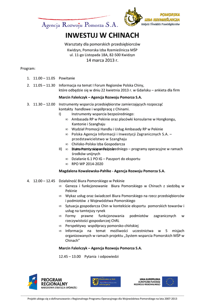 Program - Warsztaty dla przedsiębiorców Chiny _Kwidzyn_14 03 2013