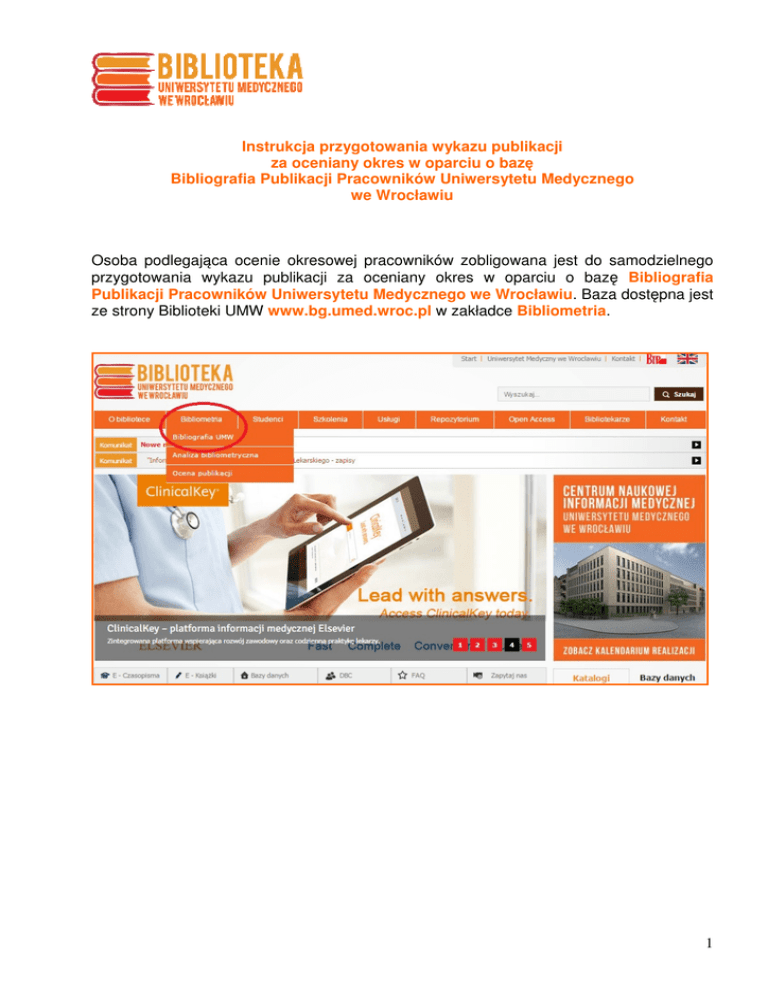 Instrukcja dotycząca wykazu publikacji