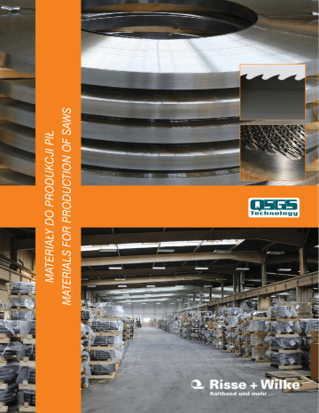 www.armoth.eu MATERIALS FOR PRODUCTION OF SAWS MATERIAŁY DO PRODUKCJI PIŁ PÓŁPRODUKTY / SEMI-FINISHED PRODUCTS TAŚMA STALOWA ZIMNOWALCOWANA COLD ROLLED STEEL STRIP GATUNKI STALI / STEEL GRADES C75 C75Ni2% 80NiCr11 75Cr1 50CrV4 51CrV4 80CrV2 D6A 48CrMoNiV4.4 51CrMoV4 X32CrMoV4-1 QSX32 QSX48 QSX50 ZASTOSOWANIE / APPLICATION Do produkcji pił taśmowych i trakowych Steel strips are used for bandsaw and frame saw manufacturing OBRÓBKA CIEPLNA / HEAT TREATMENT Taśma w stanie miękkim / Anealled strip (soft) Taśma hartowana i odpuszczana / Hardened and tempered WYKONANYWANE PÓŁPRODUKTY / PRODUCTS WE OFFER Taśmy wąskie 30-60 mm / Narrow blades 30-60 mm Taśmy szerokie 60-270 mm / Wide blades 60-270 mm Trakowe 80-180 mm / Frame saw 80-180 mm UZĘBIANIE / TOOTHING Wykrawanie na prasie / Punched Wycinanie laserem / Laser cut Szlifowanie / Ground Indywidualne, zgodnie z rysunkiem Klienta / Individually, according to request POWIERZCHNIA / SURFACE Polerowana / Polished Szlifowana / Ground OBRÓBKA CIEPLNA ZĘBÓW / TEETH TREATMENT Hartowanie indukcyjne / Induction hardening KOLOR / COLOUR Jasna / Bright Złota / Gold Niebieska / Blue ZGRZEWANIE / WELDING Doczołowe w pętlę: od 30 mm do 210 mm / Flush butt welding to loop: 30-210 mm KRAWĘDZIE / EDGES Proste po cięciu / Slit Zaokrąglone / Round Inne kształty krawędzi do uzgodnienia / Other execution on request WYMIARY TAŚM / STRIP DIMENSION Szerokość / Width Grubość / Thickness 30.0 – 300.0 mm 0.80 – 2.50 ZNAKOWANIE / MARKING Atramentowe / Ink jet Mikroudarowe / Microimpact Laserowe / Laser Inne obróbki półproduktów zgodnie z ustaleniami z klientem. Other processes on request. Please send your inquiry to our e-mail address. TOLERANCJA / TOLERANCE Materiały wykonane są zgodnie z normą DIN EN 10140. Zawężone tolerancje zgodnie z indywidualnym zleceniem. All steel strips are produced according to DIN EN 10140 standard. Narrow tolerances according to customer’s request. Wszystkie operacje kontrolowane są w laboratorium, dzięki czemu uzyskuje się stabilną i wysoką jakość. All operations are controlled in the laboratory, thus stable and high quality is ensured. Firma oferuje inne rozmiary taśm. W tym celu proszę kontaktować się z biurem. Other diemsions on request. Please send your inquiry to our office. Głównym dostawcą stali jest firma Risse + Wilke. Main steel strip supplier is Risse + Wilke. www.armoth.eu www.armoth.eu Firma QSGS TECHNOLOGY powstała w 1995 roku. Dostawcami materiałów są światowi liderzy w zakresie zaawansowanych stopów. Głównym dostawcą jest niemiecka firma Risse + Wilke. Producenci oferują stabilną i wysoką jakość zgodną z koncepcją rozwoju firmy. Firma stawia także na światowych dostawców technologii dających stabilność współpracy. W długim okresie daje to stałą jakość oferowanych produktów, a co za tym idzie satysfakcję klientów. Misją QSGS Technology jest produkcja wysokiej jakości narzędzi gwarantujących klientom obniżenie kosztów funkcjonowania i wzrost konkurencyjności ich firm. Nazwa firmy to odzwierciedlenie partnerów biznesowych, którzy współtworzą koncepcję technologii linii produkcyjnej, łańcucha dostaw materiałów i działu jakości. QSGS TECHNOLOGY was founded in 1995. Suppliers of materials are world leaders in the field of advanced alloys. A major supplier is German Company Risse + Wilke. Manufacturers offer a stable and high quality compatible with the company development concept. The company relies also on the world’s technology providers, providing stability. In the long term this gives consistent quality of products, and hence the satisfaction of users. The Mission of the QSGS Technology is manufacturing high-quality production tools to reduce customers’ cost and increase the competitiveness of their companies. The company name is a reflection of the business partners, who contribute to the concept of a production line technology, supply chain, materials and quality. Quality of Swedish German and Switzerland Technology Kontakt / Contact: QSGS Technology ul. Łużycka 4 07-410 Ostrołęka POLAND Tel. +48 29 764 43 15 Fax +48 29 769 43 86 e-mail: [email protected] www.armoth.eu www.armoth.eu