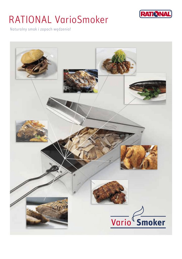 RATIONAL VarioSmoker Naturalny smak i zapach wędzenia! RATIONAL VarioSmoker Naturalny smak i zapach wędzenia! Nadaj mięsu, rybie i warzywom wyrazisty zapach wędzenia i mocne barwy. Twoje produkty uzyskają naturalny wędzony zapach, który można zmieniać w zależności od upodobań smakowych. Nie trzeba kupować osobnej wędzarni. Teraz każdy może wędzić w urządzeniu firmy RATIONAL. Umożliwia to nowe wyposażenie dodatkowe: VarioSmoker. Używając VarioSmoker, można przygotować tradycyjne wędzonki. Oszczędza to czas, miejsce i wydatki na inwestycje. Nasz przewodnik instalacji i szczegółowe zalecenia dotyczące przyrządzania produktów pozwolą szybko i bez problemu uruchomić VarioSmoker, aby Twoje menu mogło zostać wzbogacone o nowe wrażenia smakowe. Mięso Ryba Warzywa > > > > > > > > > > > > > > > Mostek wołowy Ł opatka wieprzowa Żeberka Kurczak w przyprawach Szynka Karkówka Makrela Łosoś Pstrąg Węgorz Pomidory Cebula Chili w strąkach Czosnek P apryka czerwona i żółta > Cukinia >Naturalny zapach wędzenia Prawdziwy, oryginalny i niepowtarzalny W VarioSmoker używa się zwykłych materiałów wędzarniczych, takich jak zrębki drewniane oraz granulat drewniany. Zmiana zapachu dymu powstaje poprzez zmianę naturalnego materiału wędzarniczego. Za pomocą zmian temperatury oraz czasu wędzenia uzyskuje się zmianę intensywności zapachu gotowego produktu – zgodnie z indywidualnymi upodobaniami! >P lug & Play czyli „podłącz i używaj” Można wędzić od razu! VarioSmoker może być używany we wszystkich urządzeniach firmy RATIONAL, zmontowanych po 1997 roku (tzn. w modelach ClimaPlus Combi®, CombiMaster ® oraz SelfCookingCenter ®). Do rozpoczęcia wędzenia wystarczy włączyć VarioSmoker do sieci. VarioSmoker pracuje w każdym trybie pracy urządzenia głównego: w trybie manualnym, przy programach manualnych oraz w sprawdzonym trybie pracy inteligentnej SelfCookingCenter ®. Zasilacz VarioSmoker VarioSmoker w urządzeniu RATIONAL VarioSmoker nie jest zalecany do użytku w urządzeniach typu 202. Zeskanuj aby obejrzeć film Europe RATIONAL Großküchentechnik GmbH 86899 Landsberg a. Lech/Germany tel. +49 (0)8191.327387 e-mail [email protected] www.rational-online.de RATIONAL AUSTRIA GmbH 5020 Salzburg/AUSTRIA tel. +43 (0)662.832799 e-mail [email protected] www.rational-online.at tel. +32 15 285500 e-mail [email protected] www.rational.be RATIONAL France S.A.S. F-68271 WITTENHEIM Cedex tel. +33 (0)3 89 570 555 e-mail [email protected] www.rational-france.fr RATIONAL Ibérica Cooking Systems S.L. 08940 Cornellá (Barcelona)/SPAIN tel. +34 93 4751750 e-mail [email protected] www.rational-online.es RATIONAL Sp. z o.o. 02-690 Warszawa/POLAND tel. +48 22 864 93 26 e-mail [email protected] www.rational-online.pl RATIONAL Italia S.r.l. 30174 Mestre (VE)/ITALY tel. +39 041 5951909 e-mail [email protected] www.rational-online.it RATIONAL Nederland Grootkeukentechniek BV 7609 RD Almelo/THE NETHERLANDS tel. +31 546 546000 e-mail [email protected] www.rational.nl RATIONAL Slovenija SLORATIONAL d.o.o. 2380 Slovenj Gradec / Slovenija tel. +386 (0)2 8821900 e-mail [email protected] www.slorational.si RATIONAL Schweiz AG 9435 Heerbrugg/SWITZERLAND tel. +41 71 727 9092 e-mail [email protected] www.rational-online.ch RATIONAL UK Luton, Bedfordshire, LU4 8EF United Kingdom tel. 00 44 (0) 1582 480388 e-mail [email protected] www.rational-online.co.uk RATIONAL Scandinavia AB 212 39 Malmö/SWEDEN tel. +46 (0)40-680 85 00 e-mail [email protected] www.rational-online.se РАЦИОНАЛЬ в России и СНГ Проспект Андропова 18, стр. 6 115432, г. Москва Тел.: +7 495 640 63 38 Эл. почта: [email protected] www.rational-online.ru RATIONAL Belgium nv 2800 Mechelen/Belgium RATIONAL Norge AS 0411 Oslo/Norge tel. +47 22 70 10 00 e-mail [email protected] www.rational.no RATIONAL International AG Istanbul Irtibat burosu 34196 Istanbul/Turkiye tel. +90 212 603 6767 e-mail [email protected] www.rational-online.com.tr America RATIONAL USA Schaumburg, IL 60173 toll free 888-320-7274 e-mail [email protected] www.rational-online.us RATIONAL México 11570 - Col. Chapultepec Morales tel. +52 (55) 5292-7538 e-mail [email protected] www.rational-online.mx 㪹㆞↩䯍ኔዄኧወವንዀኮዐ ᇽ 㨀℻掌㠖℻◉㈛㰌ₐ䥽䟹⚆ ⇞♚ₜ╤䞲歾䞿㳚ኰወ⚆殷ኃኀዐኍ tel.(03) 3812 -6222 ኾዙወቿኦዉኖ[email protected] ኸዙኽዙንwww.rational-online.jp RATIONALₙ䀆 ₙ䀆ゑ化⢘㿫恾⚆ ⧳棂⦌棔⟕┰ㄎ⧉%⸳ 挽㟎冥䪐₼⦌ 䟄幬᧶+86 21 64737473 䟄挽᧶shanghai.offi[email protected] www.rational-china.cn RATIONAL Korea ꄱ렍꿙驕뤉ꍡ껹늱겒쁁ꩡ 陲韥鵹ꫦ驝겑ꯍ뇊霡ꚪ뇊韭 ꄱ렍꿙驕뼍끥걙 끥뵭뿭鲵뼑ꖱ霢 놹쀉 e-mail [email protected] www.rationalkorea.co.kr RATIONAL International India Private Limited Gurgaon, 122002 Haryana, India phone +91 124 463 58 65 e-mail [email protected] www.rational-online.in RATIONAL NZ Ltd Auckland, 1643 tel. +64 (9) 633 0900 e-mail [email protected] www.rationalnz.co.nz RATIONAL International Middle East Citadel Tower, Dubai, UAE phone +971 4 431 8835 e-mail [email protected] www.rational-online.ae RATIONAL Canada Mississauga, Ontario L5N 6S2 toll free 1-877-RATIONAL (728-4662) e-mail [email protected] www.rational-online.ca RATIONAL BRASIL São Paulo, SP CEP: 04531-080 tel. +55 (11) 3071-0018 e-mail [email protected] www.rational-online.com.br RATIONAL AUSTRALIA PTY LTD Derrimut, VIC 3030 tel. +61 (0) 3 8369 4600 e-mail [email protected] www.rationalaustralia.com.au RATIONAL International AG Heinrich-Wild-Straße 202 CH-9435 Heerbrugg tel. +41 71 727 9090 fax: +41 71 727 9080 e-mail [email protected] www.rational-online.com RATIONAL AG Iglinger Straße 62 86899 Landsberg a. Lech tel. +49 8191 3270 fax +49 8191 21735 e-mail [email protected] www.rational-online.com 80.25.088 · V-01 · MDS/Scel · 09/13 · polnisch Zmiany techniczne,