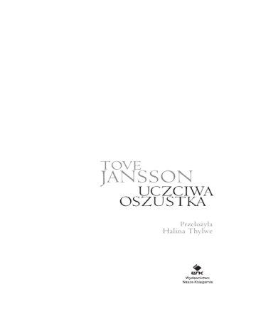 Przełożyła Halina Thylwe 1 Był zwykły ciemny zimowy ranek i wciąż padał śnieg. W wiosce w ani jednym oknie nie paliło się światło. Katri osłoniła lampę, żeby nie obudzić brata. W pokoju było bardzo chłodno. Zagotowała kawę i postawiła termos przy jego łóżku. Pod drzwiami leżał duży pies i patrzył na nią, z nosem między łapami; czekał, aż razem wyjdą. Na wybrzeżu śnieg padał od miesiąca. Jak daleko sięgano pamięcią, nigdy nie było tyle śniegu; sypał nieprzerwanie, piętrzył się przy drzwiach i oknach, obciążał dachy, nie ustawał ani na godzinę. Ledwie oczyszczone drogi dla pieszych błys kawicznie się zaśnieżały. Mróz sparaliżował pracę w szkutniach. Ludzie budzili się późno, bo nie było już poranków. W wiosce zalegała cisza i dziewiczy śnieg, dopóki rodzice nie wypuścili dzieci, któ- Tove Jansson re, pozostawione samopas, kopały tunele i groty. I wrzeszczały. Zabroniono im rzucania śnieżkami w okno Katri Kling, ale nic sobie z tego nie robiły. Katri mieszkała na poddaszu nad sklepem z bratem Matsem i dużym psem, który nie miał imienia. Dzień w dzień wyprowadzała go przed świtem, maszerowała gościńcem w stronę cypla z latarnią morską. Ludzie zaczynali się budzić, mówili, że jak padało, tak pada, a ona znowu idzie z psem i ma na sobie kołnierz z wilczego futra. To nienaturalne, żeby nie nadać imienia swojemu psu, wszystkie psy powinny mieć imiona. I mówili o Katri Kling, że obchodzą ją tylko liczby i brat. I zastanawiali się, skąd u niej żółte oczy. Oczy Matsa były niebieskie jak oczy jego matki, nikt nie potrafił sobie przypomnieć, jak wyglądał ojciec, nie pochodził z tych stron, dawno temu wyruszył na północ po zapas drewna i nigdy nie wrócił. Przywykli do tego, że wszyscy mają oczy mniej lub bardziej niebieskie, a u Katri były niemal tak żółte jak ślepia jej psa. Patrząc, zwężała je w wąskie szparki, więc rzadko udawało im się dostrzec 10 uczciwa oszustka ich nienaturalny kolor: żółty o lekkim odcieniu szarości. Wiecznie nieufna, w chwilach nagle rozbudzonej podejrzliwości obrzucała bliźnich spojrzeniem szeroko otwartych oczu, które niekiedy, w odpowiednim oświetleniu, były naprawdę żółte, co mogło ich przyprawić o silne uczucie niepewności. Odnosili wrażenie, że Katri Kling skupia się i polega wyłącznie na sobie i bracie, którego wychowywała i chroniła, odkąd skończył sześć lat. To trzymało wszystkich na dystans. I to, że nikt nigdy nie widział, żeby bezimienny pies kiedykolwiek merdał ogonem. I to, że ani ona, ani jej pies nie odwzajemniali niczyjej życzliwości. Po śmierci matki Katri przejęła jej obowiązki ekspedientki w sklepie, poza tym prowadziła rachunki. Była bardzo bystra. W październiku złożyła wymówienie. Podobno sklepikarz najchętniej pozbyłby się Katri z poddasza, ale nie miał odwagi jej tego powiedzieć. Mats się nie liczył. Wysoki krzepki piętnastolatek, dziesięć lat młodszy od siostry, uchodził za prostaczka. Podejmował się dorywczych prac w wiosce, ale najwięcej czasu, jeśli 11 Tove Jansson tylko pozwalała na to pogoda, spędzał w szkutni braci Liljebergów. Liljebergowie zlecali mu rozmaite, niezbyt ważne zajęcia. W Västerby od dawna zaprzestano połowów, bo się nie opłacało. Były tam trzy szkutnie; do jednej slipowano łodzie na zimę i wykonywano w niej przeglądy. Najlepszymi szkutnikami byli czterej nieżonaci bracia Liljebergowie. Najstarszy, Edvard, robił projekty. Poza tym jeździł furgonetką pocztową do miasteczka, skąd przy okazji odbierał towary do sklepu. Właścicielem samochodu, jedynego w wiosce, był sklepikarz. Szkutnicy z Västerby, dumni z natury, sygnowali swoje łodzie literą W, jakby ich wioska była najstarszą zachodnią społecznością w kraju. Kobiety szydełkowały kapy na łóżka według tradycyjnych, wypróbowanych wzorów i też opatrywały je literą W. W czerwcu zjeżdżali letnicy, kupowali łodzie i kapy i dopóki było ciepło, spędzali w Västerby Västerby – Wieś Zachodnia, Wästerby – historyczna pisownia m.in. nazw miejscowości (przyp. tłum.). 12 uczciwa oszustka beztroskie wakacje. Pod koniec sierpnia znów zapadała cisza i wszystko wracało do normy. Potem nadchodziła zima. Teraz był granatowy poranek, śnieg się rozis krzył, w kuchniach zapłonęło światło i na dwór wy biegły dzieci. O szybę uderzyły pierwsze śnieżki, ale Mats wciąż spokojnie spał. Ja, Katri Kling, często rozmyślam nocami. Jak na taką późną porę, moje myśli są niezwykle rzeczowe. Przeważnie myślę o pieniądzach, wielkich pieniądzach, żeby szybko, sprytnie i uczciwie zdobyć tyle pieniędzy, żebym już nie musiała o nich więcej myśleć. Potem je zwrócę. Przede wszystkim Mats dostanie swoją łódź, dużą łódź żeglugową z kajutą i silnikiem stacjonarnym, najlepszą, jaką kiedykolwiek zbudowano w tej żałosnej wioszczynie. Co noc słyszę śnieg sypiący w okno, miękki szept śniegu, który wiatr przygania znad morza; to dobrze, chciałabym, żeby schowała się pod nim cała wioska, żeby zniknęła, żeby nareszcie było czysto… Nie ma nic równie spokojnego i bezkresnego jak długie zimowe ciemności, które trwają i trwają, 13 Tove Jansson jakby się mieszkało w tunelu, gdzie czasami mrok gęstnieje i zapada noc, a czasami panuje szarówka. Jest się odgrodzonym od wszystkiego, osłoniętym i bardziej samotnym niż zwykle. Czeka się w ukryciu jak drzewo. Tutaj się mówi, że pieniądze śmierdzą, ale to nieprawda. Są czyste jak liczby. To ludzie śmierdzą. Każdy ma swój sekretny odorek, który się potęguje w chwilach gniewu, wstydu albo strachu. Pies to momentalnie wyczuwa, od razu wie. Gdybym była psem, wiedziałabym za dużo. Tylko Mats nie ma zapachu, Mats jest czysty jak śnieg. Mój pies jest duży, ładny i posłuszny. Nie lubi mnie. Darzymy się szacunkiem. Szanuję tajn