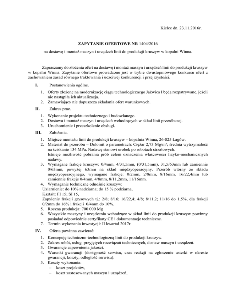 Pobierz zapytanie ofertowe - Świętokrzyskie Kopalnie Surowców