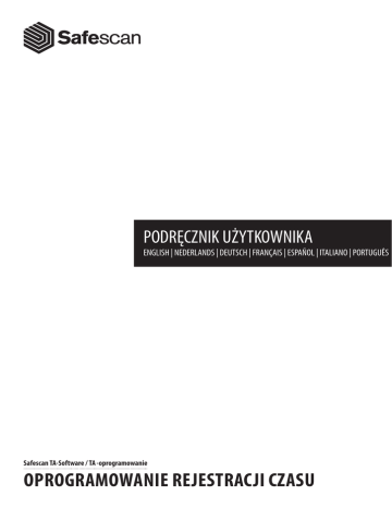 PODRĘCZNIK UŻYTKOWNIKA ENGLISH | NEDERLANDS | DEUTSCH | FRANÇAIS | ESPAÑOL | ITALIANO | PORTUGUÊS Safescan TA-Software / TA -oprogramowanie OPROGRAMOWANIE REJESTRACJI CZASU SPIS TREŚCI WPROWADZENIE I WSKAZÓWKI DOTYCZĄCE STOSOWANIA 1. INFORMACJE PODSTAWOWE 3. PRZEGLĄD EKRANÓW 1.1 Minimalne wymagania systemowe 3 1.2 Instalowanie oprogramowania 3 1.3 Aktywacja oprogramowania 3 1.4 Pasek menu na ekranie 3 1.4.1Tabele 4 1.4.2Filtry 4 1.4.3 Najczęściej wykorzystywane ikony 5 1.5 Wybór języka 5 1.6 Połączenie oprogramowania z terminalem(ami) 5 1.6.1 Pamięć USB 6 1.6.2 Sieć 6 1.7 Tworzenie wydziałów 7 1.8 Tworzenie użytkowników 8 1.8.1 Rozpoczynając od terminala 8 1.8.2 Rozpoczynając od oprogramowania 10 1.9 Harmonogramy pracy 11 1.10 Kody pracy 13 1.10.1 Regular out (Regularne wyjście) 14 3.1Preferencje 21 3.1.1Ustawienia 22 3.1.2 Tabela In/Out translation 22 3.2Dziennik 23 3.3 Ekran Clock 23 3.3.1 Dodawanie czasu rejestracji 24 3.4 Siatka rejestracji (tylko w wersji oprogramowania TA+) 24 3.5Wydział 25 3.6Użytkownik 25 3.7 Kod pracy 26 3.8 Work Schedule (Harmonogram pracy) 26 3.9 Planowanie ruchomego czasu pracy (tylko w wersji oprogramowania TA+) 26 3.10Urządzenie 27 3.11 Presence (Obecność) 27 3.12 Day (Dzień) 28 3.13 Period (Okres) 28 3.14 Report (Sprawozdanie) 29 3.15 Work Code report (Sprawozdanie dotyczące kodów pracy) 29 3.16 About (Informacje o) 29 2. ZAAWANSOWANE SCENARIUSZE STOSOWANIA (TYLKO WERSJA TA+ OPROGRAMOWANIA) 2.1Planowanie 15 2.2 Święta państwowe i urlopy 17 2.2.1 Święta państwowe 17 2.2.2Urlopy 18 2.3 Zwolnienia lekarskie 19 2.3.1 Postępowanie w przypadku zwolnień lekarskich pracowników powiązanych z harmonogramem planowania 20 2.4 Wprowadzanie poprawek do godzin nadliczbowych 20 2 DODATEK Wsparcie techniczne 30 Baza danych Firebird 30 Aktualizacje30 www.safescan.com WPROWADZENIE I WSKAZÓWKI DOTYCZĄCE STOSOWANIA Dziękujemy za zakup oprogramowania Safescan TA. Wraz z terminalem Time Attendance serii TA-8000, umożliwia on kompletne i skuteczne rozwiązanie rejestracji czasu pracy. Przed przystąpieniem do instalowania i użytkowania oprogramowania zalecamy dokładne zapoznanie się z niniejszą instrukcją obsługi i zachowanie jej na przyszłość do ewentualnego wykorzystania. W niniejszej instrukcji obsługi przedstawiony jest opis podstawowych ustawień oprogramowania, ustawień zaawansowanych, a także scenariusze użytkowania i szczegóły dotyczące wszystkich pozycji menu urządzenia. 1. INFORMACJE PODSTAWOWE 1.1 MINIMALNE WYMAGANIA SYSTEMOWE Aby móc korzystać z oprogramowania TA, należy dysponować komputerem spełniającym następujące minimalne wymagania: • wolne miejsce na dysku twardym: 100 MB • rozdzielczość ekranu 1024 x 768 • pamięć: 1 GB • łączność WiFi lub Ethernet (sieć LAN) Ethernet dla funkcji czasu rzeczywistego. • system operacyjny: Windows 7 • Port USB 1.2 INSTALOWANIE OPROGRAMOWANIA Pobierz oprogramowanie, korzystając z dostarczonego łącza, rozpakuj plik .zip i dwukrotnie kliknij taSetup.exe, aby uruchomić program instalacyjny. Postępuj zgodnie z instrukcjami wyświetlanymi na ekranie, wybierz język oprogramowania i folder docelowy, w którym chcesz zainstalować oprogramowanie. 1.3 AKTYWACJA OPROGRAMOWANIA Różnice pomiędzy oprogramowaniem TA i oprogramowaniem TA+: „TA” jest regularnym oprogramowaniem do kontroli czasu pracy i obecności produkcji firmy Safescan, zapewniającym wszystkie elementy niezbędne do realizacji podstawowych funkcji rejestracji czasu pracy i sprawozdawczości. „TA+” zawiera dodatkowe funkcje dla bardziej zaawansowanych potrzeb, na przykład graficzne narzędzie zarządzania planowaniem ruchomego czasu pracy, a także zaawansowana funkcjonalność kodów pracy. Po zainstalowaniu, oprogramowanie przez 30 dni działa w wersji TA+. W dowolnej chwili można wprowadzić klucz licencji. W trybie testowym oprogramowanie po uruchomieniu wyświetla ekran zarządzania licencją. W przypadku niewprowadzenia klucza licencji w ciągu 30 dni, oprogramowanie wyświetli przypomnienie o konieczności wprowadzenia klucza licencji w celu umożliwienia korzystania z niego. W przypadku wprowadzenia klucza licencji dla wersji TA będzie wciąż możliwe korzystanie w ciągu 30 dni z wersji testowej TA+ i przekonanie się co do celowości jej rozszerzenia. 1.4 PASEK MENU NA EKRANIE Pasek menu u góry okna udostępnia wszystkie ekrany oprogramowania. Jak w przypadku każdego standardowego menu Windows w górnej części ekranu, możliwe jest dokonywanie wyboru za pomocą kliknięć myszy lub z wykorzystaniem paska skrótów klawiaturowych (dostępnych również dzięki jednoczesnemu naciśnięciu klawisza ALT oraz innego klawisza). Pasek ten umożliwia dostęp do najczęściej używanych funkcji oprogramowania, takich jak sprawozdania lub ekrany pomocne w zarządzaniu. www.safescan.com 3 1.4.1 TABELE Tabele Wiele ekranów oprogramowania wyświetlanych jest w postaci tabel. Tabele te mają wspólne cechy. Sortowanie danych Można sortować dane w tabelach, klikając nagłówek kolumny, która ma by przedmiotem sortowania. Kolejne kliknięcie spowoduje odwrócenie porządku sortowania. Zmiana kolejności kolumn Możesz zmienić kolejność kolumn w tabelach, przeciągając dowolny nagłówek w żądane miejsce. Przełączanie widoku kolumn Kliknięcie prawym przyciskiem myszy dowolnej kolumny spowoduje wyświetlenie listy wszystkich dostępnych kolumn. Klikaj nazwy kolumn, aby je wyświetlić/ukryć. 1.4.2 FILTRY Na większości ekranów programowania znajdują się filtry. Filtry te pomogą Ci uzyskać odpowiednie dane w szybszy i bardziej efektywny sposób. Filtr tekstowy użytkownika Wpisz pierwsze litery nazwy użytkownika, którego szukasz. Filtr wydziałowy: Zawiera wszystkie dane dotyczące jednego wybranego działu. Filtr użytkownika: Zawiera wszystkie dane dotyczące jednego konkretnego użytkownika. Filtr zakresu sprawozdania: Wybierz jeden predefiniowa