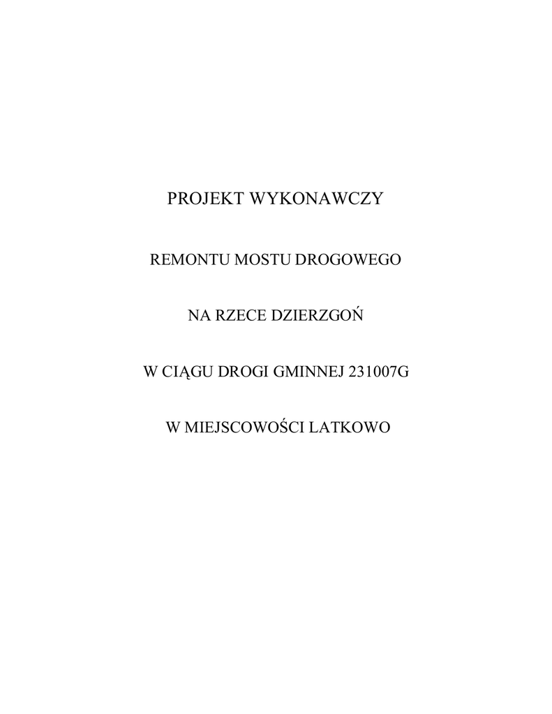 PROJEKT WYKONAWCZY REMONTU MOSTU DROGOWEGO NA RZECE DZIERZGOŃ W CIĄGU DROGI GMINNEJ 231007G W MIEJSCOWOŚCI LATKOWO Temat: Projekt wykonawczy remontu mostu drogowego na rzece Dzierzgoń w ciągu drogi gminnej 231007G w m. Latkowo. Obiekt: Remont mostu drogowego na rzece Dzierzgoń w ciągu drogi gminnej 231007G w m. Latkowo Inwestor: Zleceniodawca: Branża: Stadium: Nr zlecenia: Stanowisko Projektant Urząd Gminy Stary Dzieżgoń. Urząd Gminy Stary Dzieżgoń. Mostowa. Projekt wykonawczy. Umowa UG Stary Dzierzgoń nr 4/2011 z dnia 16 marca 2011 r. Imię i nazwisko Eugeniusz Kłobukowski Nr uprawnień GP.I. 7342/16/TO/92 Data Podpis Sierpień 2012 OŚWIADCZENIE Oświadczam, że projekt wykonawczy remontu mostu drogowego na rzece Dzierzgoń w ciągu drogi gminnej 231007G w m. Latkowo sporządzony został zgodnie z obowiązującymi przepisami oraz zasadami wiedzy technicznej. Projektant inż. E. Kłobukowski SPIS TREŚCI A. CZĘŚĆ OPISOWA Strona 1. Opis techniczny 2. Informacja o bezpieczeństwie i ochronie zdrowia 3. Przedmiar robót 3-6 7 8-9 B. CZĘŚĆ GRAFICZNA 1. 2. 3. 4. 5. 6. 7. 8. 9. Mapa orientacyjna 1:100 000 Plan sytuacyjno-wysokościowy 1:1 000 Projekt zagospodarowania terenu 1: 1 000 Inwentaryzacja istniejącego mostu Przekrój podłużny mostu Widok z góry Przekrój poprzeczny mostu Przyczółek Droga w planie - zał. nr 1 - zał. nr 2 - zał. nr 3 - rys. nr 1 - rys. nr 2 - rys. nr 3 - rys. nr 3 - rys. nr 5 - rys. nr 6 C. MATERIAŁY POMOCNICZE 1. Kosztorys inwestorski – jako osobny dokument 2. Szczegółowe Specyfikacje Techniczne – jako osobny dokument Opis techniczny do remontu mostu drogowego na rzece Dzierzgoń w ciągu drogi gminnej 231007G w m. Latkowo 1. Uwagi formalne Dokumentację wykonano na podstawie umowy UG Stary Dzierzgoń nr 43/2011 z dnia 16 marca 2011 r. 2. Podstawa opracowania dokumentacji Dokumentację opracowano na podstawie: Ø przeprowadzonej wizji lokalnej obiektu w dniu 10.03.2011 r. Ø dokonaniu szczegółowych pomiarów mostu Ø uzgodnień przedstawiciela Urzędu Gminy Stary Dzierzgoń oraz projektanta. 3. Przedmiot opracowania Przedmiotem opracowania jest projekt wykonawczy remontu mostu drogowego na rzece Dzierzgoń w ciągu drogi gminnej 231007G w m. Latkowo 4. Zakres opracowania Opracowany projekt wykonawczy zawiera ocenę stanu technicznego obiektu oraz zakres robót remontowo-modernizacyjnych mających na celu przywrócenie właściwego stanu technicznego obiektu w celu zapewnienia bezpiecznego ruchu po drodze. 5. Stan istniejący 5.1. Obiekt mostowy Obiektem do remontu jest most drogowy jednoprzęsłowy leżący w ciągu drogi gminnej, który przecina rzekę Dzierzgoń pod kątem 900. Układ statyczny – belkowy, swobodnie podparty. Konstrukcja dźwigarów nośnych – stalowe belki walcowane dwuteowe oraz belki drewniane. Przyczółki – palowe, z oczepem drewnianym. Posadowienie – ruszt palowy, wbijany, z pali drewnianych. Pale w części tylnej zabezpieczone ścianką betonową z podkładów żelbetowych zakończone skrzydełkami betonowymi. Nawierzchnia na moście - drewniana. Balustrady stalowe typu P-I Dł. mostu – 4,40 m. Szer.mostu – 6,00 m. Szer. jezdni – 5,80 m, ograniczona balustradami stalowymi. Dł. skrzydełek – 2,00 m. 5.2. Ustrój nośny i płyta jezdni Konstrukcją nośną mostu są belki stalowe i belki drewniane, ułożone naprzemiennie. W przekroju poprzecznym występują 3 belki stalowe, walcowane dwuteowe NP200S oraz 4 belki drewniane ułożone przemiennie z belkami stalowymi. Belki oparte na oczepach drewnianych rusztu palowego z pali drewnianych wbijanych. Podpory zewnętrzne tworzące przyczółki mostu wykonane z 7 pali drewnianych wbijanych w grunt, które w górnej części zwieńczone są oczepami drewnianymi. Ścianki oporowe za rusztem palowym wykonane z ułożonych podkładów żelbetowych zakończonych na zewnątrz skrzydełkami betonowymi. Pokład jezdni drewniany pojedynczy z bali grubości 8 cm. Jezdnia ograniczona jest balustradami stalowymi. Brak jest krawężników. 5.3. Przyczółki Przyczółki stanowią 2 ruszty palowe złożone z 7 pali drewnianych, wbijanych w grunt, zwieńczone w górnej części oczepem drewnianym. W tylnej części występują ścianki czołowe złożone z podkładów żelbetowych, zakończone skrzydełkami betonowymi. 5.4. Dojazdy Na dojazdach do mostu brak jest płyt przejściowych. Nawierzchnia dojazdów bitumiczna. Pobocza obustronnie gruntowe. 6. Ocena stanu technicznego Na podstawie przeprowadzonej inwentaryzacji i oględzin oraz wykonaniu podstawowych pomiarów można sformułować następujące wnioski: Ø stalowe belki walcowane są silnie skorodowane, Ø belki drewniane uległy silnej korozji biologicznej i utraciły zdolność przenoszenia obciążeń, Ø pokład jezdni wykazuje zaawansowaną korozję biologiczną i zniszczenia mechaniczne wynikłe z eksploatacji i oddziaływania warunków atmosferycznych, Ø oczepy silnie skorodowane biologicznie, Ø pale na styku zwierciadła wody naruszone w znacznej części przez korozję biologiczną (duże ubytki), Ø następuje podmywanie ścianek czołowych przez płynącą wodę rzeki, Ø bezpośrednio na dojazdach znaczne ubytki nawierzchni i podmywanie przyczółków przez wody powierzchniowe i roztopowe. Na podstawie przeprowadzonej inwentaryzacji mostu i jego oceny zaleca się wykonanie remontu bez zmiany w jego układzie statycznym, lecz wykonując przedsięwzięcia, które podniosą wartość techniczną obiektu oraz jego żywotność, co zabezpieczy utrzymanie bezpiecznej ciągłości ruchu po drodze. 7. Opis remontu 7.1. Prace rozbiórkowe a) Demontaż balustrad stalowych Istniejące balustrady stalowe zdemontować w celu przygotowania ich do ponownego wbudowania. b) Rozbiórka nawierzchni jezdni Nawierzchnię drewnianą jezdni rozebrać i przeznaczyć na opał. c) Rozbiórka dźwigarów głównych. Dźwigary główne zdemontować, belki drewniane przeznaczyć na opał, natomiast belki stalowe prz