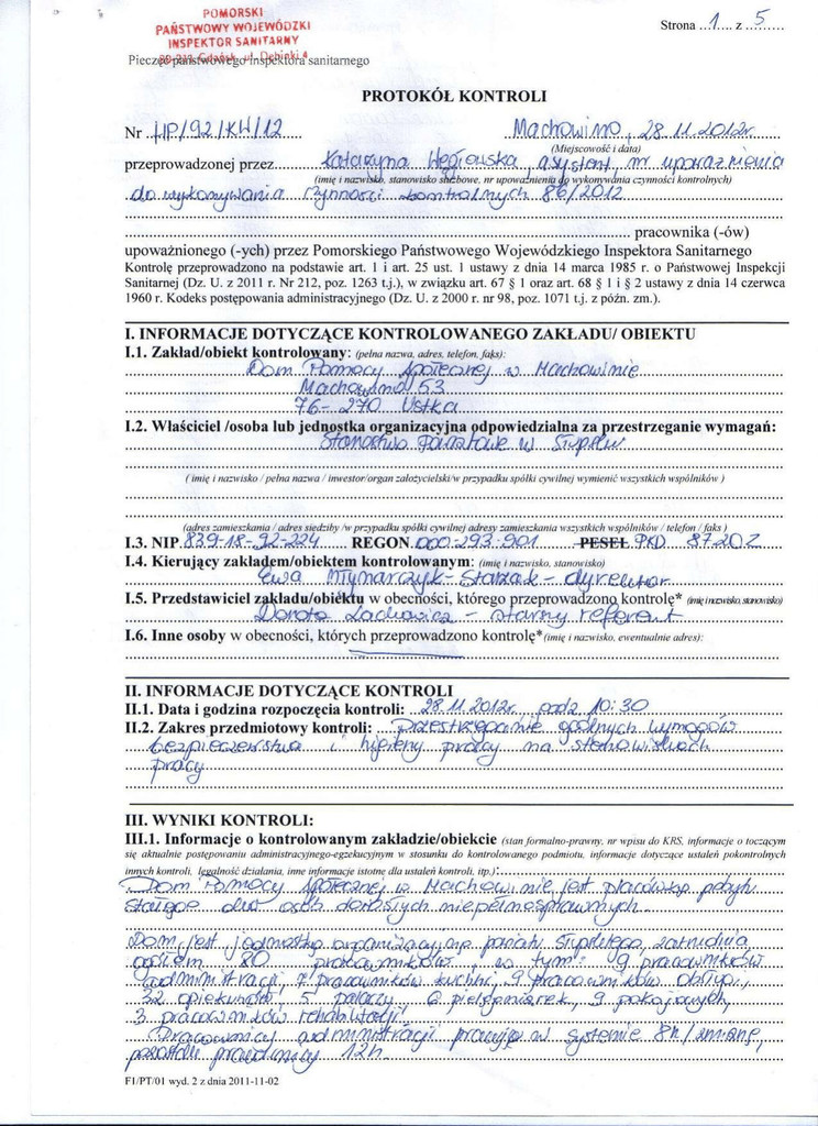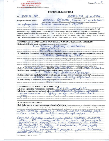 Protokół kontroli sanitarnej otrzymałem (-am) w dniu