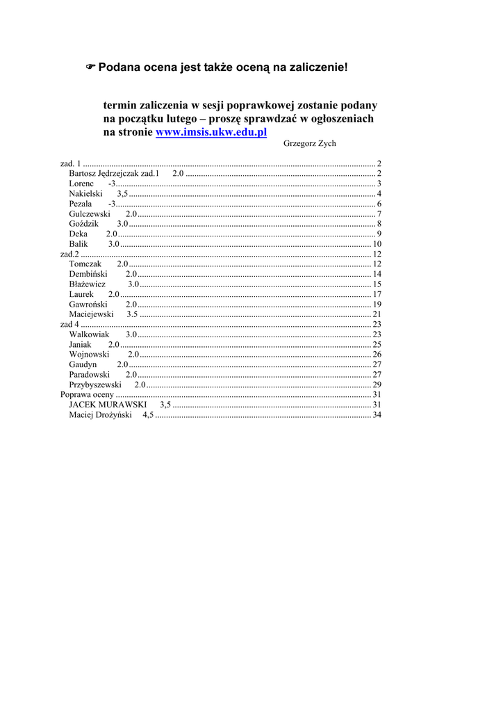Podana ocena jest takŜe oceną na zaliczenie! termin
