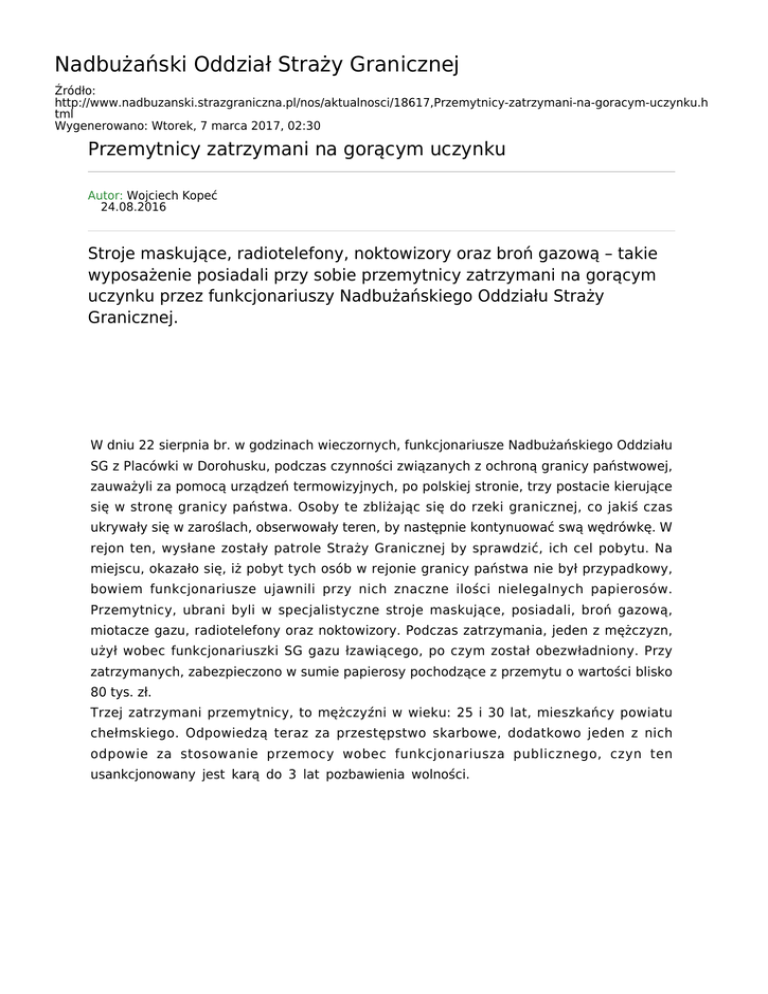 Generuj PDF z tej stronie - Straż Graniczna Nadbużański Oddział