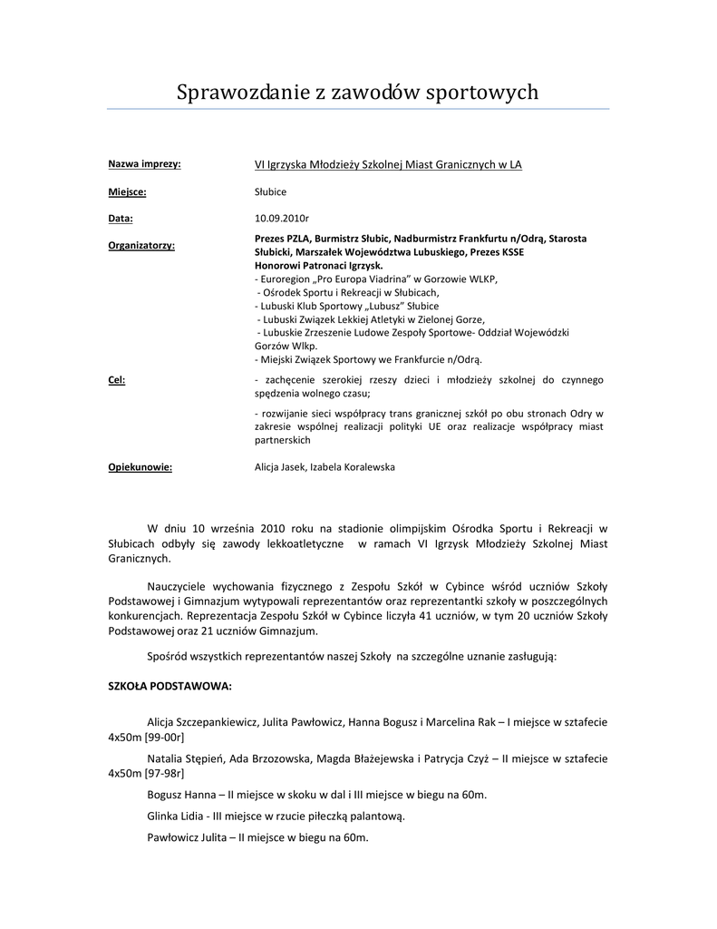 Sprawozdanie z zawodów sportowych