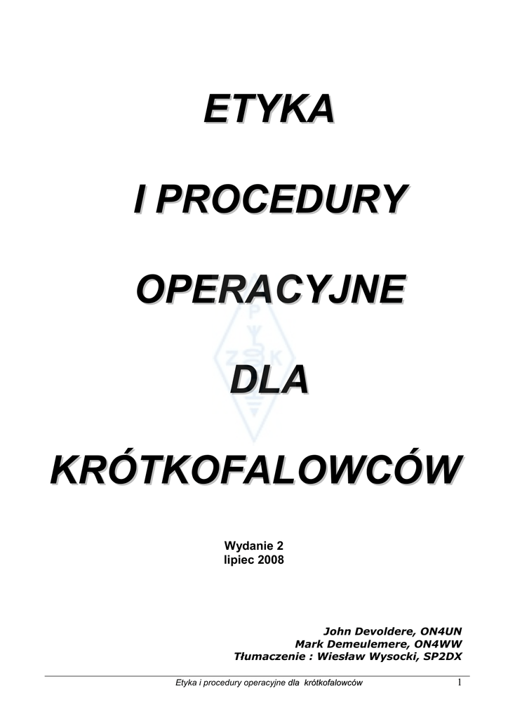 ten unikalny podręcznik „Etyka i Procedury Operacyjne dla Krótkofalowców”. Impulsem