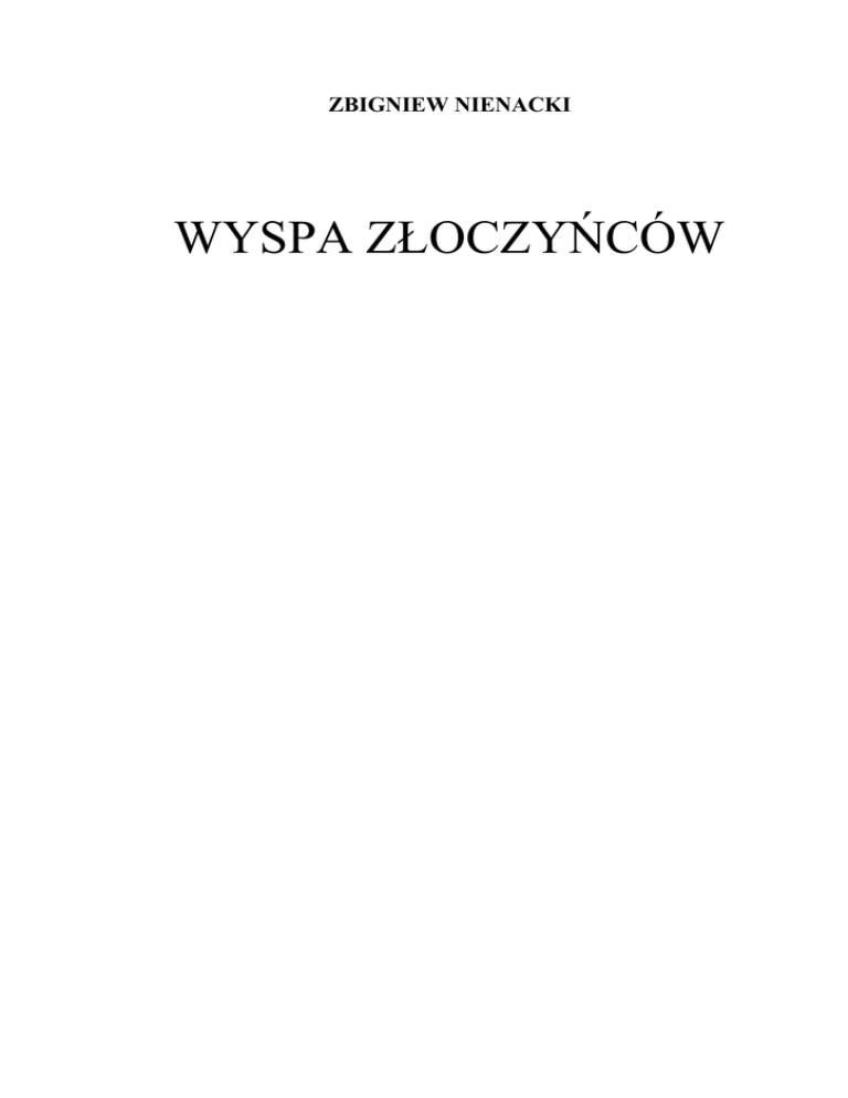 ZBIGNIEW NIENACKI WYSPA ZŁOCZYŃCÓW ROZDZIAŁ PIERWSZY DZIWNY SPADEK – TAJEMNICZY WEHIKUŁ WUJA GROMIŁŁY – CO TO ZA STWÓR? – SENSACJA NA ULICY – LARWA OBRZYDLIWEGO CHRABĄSZCZA – SZYDERSTWA NA STACJI BENZYNOWEJ – SZALEŃCZA SZYBKOŚĆ – ZDUMIENIE AUTOMOBILISTÓW – CO POTRAFI WEHIKUŁ WUJA Nie trzeba szukać przygody. Nie znajdzie się jej, choćby pojechało się aż na koniec świata, przez siedem rzek i za siedem gór. Nie zjawi się, choćby czekało się na nią dzień i noc, prowokując ją i nastawiając na nią pułapki. Nie przywoła jej żadna prośba i może się okazać, że nie ma jej nawet tam, gdzie tylu już ją spotkało. Czyż nie zdarzyło sią niejednemu odbywać podróż przez słynny z burzliwości ocean, gdy był on spokojny jak staw za domem? Czyż nie przydarzyło się niejednemu, że przedzierając się przez najdzikszą dżunglę nie napotkał ani krwiożerczych zwierząt, ani czyhających na jego życie krajowców; dzika dżungla okazała się tak bezpieczna, jak park miejski. Bo przygody nie trzeba szukać. Ona zjawia sią sama. Przychodzi w najbardziej niespodziewanych momentach i w nieoczekiwanej postaci, najczęściej, gdy nie spodziewamy się jej, nie pragniemy jej, gdy nie jest nam ona potrzebna. Najpierw daje nam znak - że oto jest, przyszła po ciebie, chce cię ogarnąć i wciągnąć w swą grę. Musisz od razu wiedzieć, że to wlaśnie jej znak, musisz go rozpoznać wśród tysiąca innych znaków. Nie wolno ci zlekceważyć jej wezwania ani odłożyć go na później. Nie lubi leniwych. Pominie cię, odejdzie i więcej po ciebie nie wróci... Zadziwiająca przygoda, jaką przeżyłem na Wyspie Złoczyńców, zapukała do mnie pod koniec czerwca 1961 roku. Ubrana była w mundur listonosza, który wręczył mi zapieczętowaną kopertę z nagłówkiem: ZESPÓŁ ADWOKACKI nr 3 w KRAKOWIE. W zapieczętowanej kopercfe znajdowało się zawiadomie-nie Zespołu Adwokackiego, że po prawie rok trwającym przewodzie spadkowym, na mocy testamentu zmarłego przed rokiem wuja mego — Stefana Gromiłły, stałem się właścicielem znajdującego się w Krakowie „murowanego garażu samochodowego oraz znajdującego się w nim pojazdu mechanicznego". Z treści listu wynikało, że po opłaceniu pewnych kosztów związanych z przewodem spadkowym mam obowiązek „wejść w prawa posiadacza murowanego samochodowego oraz znajdującego się w nim pojazdu mechanicznego”. garażu Wyznaję, że list ów wprowadził mnie w pewne zakłopotanie. Nie czułem potrzeby posiadania w Krakowie „murowanego garażu samochodowego”, mieszkałem bowiem w Łodzi. O ile dobrze pamiętałem, ów „pojazd rneGhaniczny" był okropnie starym gratem, w którym człowiek z moją pozycją społeczną i w moim wieku raczej pokazywać się nie powinien. Czyż mogłem przypuszczać — czy ktokolwiek z Was spodziewałby się - że list z Zespołu Adwokackiego jest wezwaniem najprawdziwszej i pełnej niebezpieczeństw PRZYGODY? Zatelefonowałem do swego młodszego brata, zdecydowany darować mu „murowany garaż samochodowy i znajdujący slę w nim pojazd mechaniczny". Odmówił. Powiedział, że on również otrzymał list z Zespołu Adwokackiego nr 3 w Krakowie i na mocy testamentu wuja Stefana Gromiłły stał się właścicielem książeczki oszczędnościowej, na której znajduje się osiemdziesiąt tysięcy złotych. - Za te pieniądze, jeśli zechcę, będę mógł kupić sobie nowy samochód - rzekł mój młodszy brat Paweł. - Po co mi stary grat wuja? A i garaż w Krakowie również nie jest mi do niczego potrzebny. Sprzedaj go - doradził mi. Zatelefonowałem do kuzynki Franciszki. Okazało się, że i ona otrzymała list z Krakowa i stała się wlaścicielką kompletu mebli stylowych oraz szafy z książkami, należącymi do naszego wuja. - Wyjaśnij mi moja kochana - powiedziałem kuzynce - dlaczego właśnie mnie wuj Gromiłło darował garaż i starego grata? Czyż nie rozsądniej by było zapisać mi w testamencie szafę z książkami? Wyznaję, że najbardziej chciałbym otrzymać osiemdziesiąt tysięcy na książeczce oszczędnośctowej. - Ostatni raz spotkaliśmy się z wujkiem przed dwoma laty — przypomniała mi Franciszka. - To było na pogrzebie ciotki Anny. Czy nie chwaliłeś się wówczas, że właśnie otrzymałeś prawo jazdy? - No tak. Teraz to już wszystko rozumiem. Wuj myślal, że, Bóg wie jak wielką radość sprawi mi swoją darowizną. I rad nierad zmuszony zostałem „wejść w posiadanie murowanego garażu samochodowego i znajdującego się w nim pojazdu mechanicznego". Pojechałem w tym celu do Krakowa, śpieszyłem się zresztą z załatwieniem tej sprawy, ponieważ na początku lipca oczekiwał mnie wyjazd na dość długi okres czasu. Jeden z moich przyjaciół poprosił mnie, abym spróbował wyjaśnić pewną dość intrygującą historię. Przyjąłem tę propozycję, ponieważ mogła mi ona wypełnić nudnie zapowiadający się urlop. Zdecydowałem się pójść za radą mego młodszego brata i sprzedać zarówno ów garaż, jak i samochód wuja. „Kto wie - zastanawiałem się - czy za sumę, uzyskaną ze sprzedaży, nie będę mógł nabyć na raty jakiegoś nowego samochodu? Taki pojazd przydałby mi się na urlopie". Chętnego do nabycia garażu znalazłem bardzo prędko, gorzej było z nabywcą starego samochodu wuja Gromiłły. Ktokolwiek obejrzał ów wehikuł, uśmiechał się z zakłopotaniem i natychmiast żegnał się zę mną. Nawet nłe próbował pytać o cenę. Bo też był to samochód wystarczająco dziwaczny, aby odstraszyć każdego normalnego człowieka. Jego wygląd wprawiłby w radość tylko kogoś skłonnego do największej ekstrawagancji, kogoś, kto nie przejmowałby się tym, że na widok owego samochodu, poruszającego slę na ulicach miasta, będą przystawać zdumieni przechodnie, a każde zatrzymanie ga przy chodniku spowoduje gromadzenie się tłumów wydziwiającej dzieciarni. Pojazd