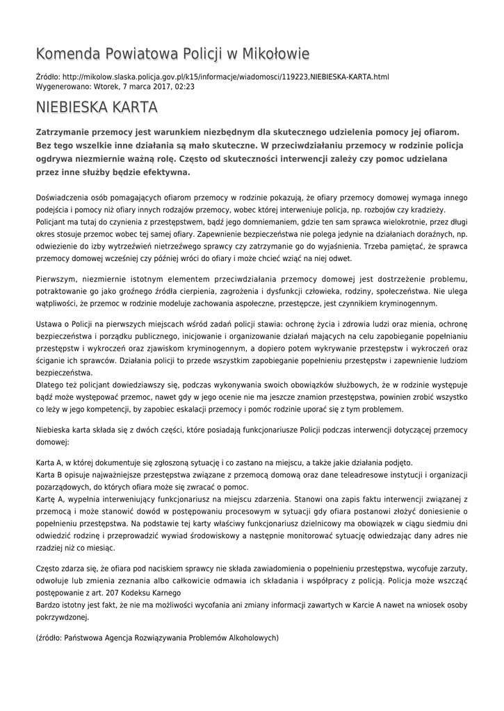 Komenda Powiatowa Policji w Mikołowie NIEBIESKA KARTA