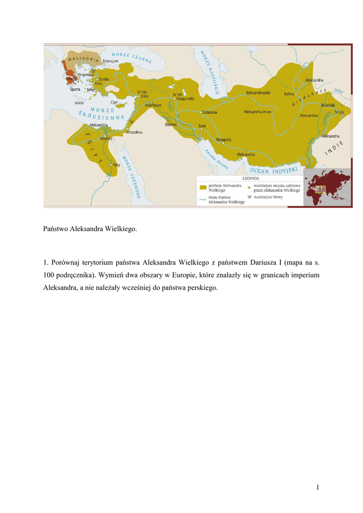 1 Państwo Aleksandra Wielkiego. 1. Porównaj terytorium państwa