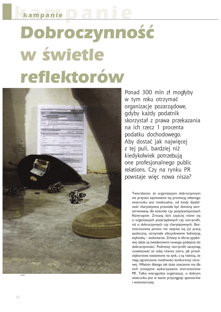 kampanie kampanie Dobroczynność w świetle reflektorów 9XWJM VUW cũ VXPũbKb ` ]bV [XT^ X][cbVJî X[PJWRcJLSN YXcJ[cMX`N PMbKb TJŖMb YXMJ]WRT \TX[cb\]Jũ c Y[J`J Y[cNTJcJWRJ WJ RLQ [cNLc Y[XLNW]J YXMJ]T^ MXLQXMX`NPX *Kb MX\]Jî SJT WJS`R¢LNS c ]NS Y^UR KJ[McRNS WRŖ TRNMbTXU`RNT YX][cNK^S XWN Y[XON\SXWJUWNPX Y^KURL [NUJ]RXW\ ,cb WJ [bWT^ 9; YX`\]JSN `R¢L WX`J WR\cJ( 1Z_%85 ?bTP]OePYTP ŇP Z]RLYTeLNUZX OZM]ZNedYYdX YTP []ed^_ZT eLUXZbLYTP ^Tí []ZXZNUÙ bčL^YPRZ bTeP]`YV` UP^_ YTPLV_`LWYP ZO VTPOd OeTLčLW YZĦÛ NSL]d_L_dbYL []eP^_LčL MdÛ OZXPYÙ eL]P eP]bZbLYÙ OWL VZĦNTZčL Ned [Zed_dbT^_dNeYdNS QTWLY_]Z[Çb E]P^e_Ù OeTĦ NeíĦNTPU XÇbT ^Tí Z Z]RLYTeLNULNS [ZeL]eÙOZbdNS Ned YZY[]ZQT_ YTŇ Z OZM]ZNedYYdNS Ned NSL]d_L_dbYdNS -Pe TY_P]P^ZbYL [ZXZN YTP YLedbL ^Tí U`Ň []LNÙ ^[ZčPNeYÙ Z_]edXLčL eOPNdOZbLYTP čLOYTPU^eÙ P_dVTP_VíwbZWZY_L]TL_EXTLYdb^QP]ePUíedVZ bPU_LVŇP^ÙĦbTLOPN_bPXYZbPRZ[ZOPUĦNTLOZ OZM]ZNedYYZĦNT ;ZOXTZ_d YZY[]ZQT_ eLNedYLUÙ ]dbLWTeZbLÛ eP ^ZMÙ ]ÇbYTP Z^_]Z ULV []ePO ^TíMTZ]^_bLYL^_LbTZYPYLed^Ve_Ù]ÇŇYTNÙŇP XLUÙZR]LYTNeZYPXZŇWTbZĦNTVZYV`]PYNUTNPYZ bPUBčLĦYTPOWL_PRZ_LVO`ŇPeYLNePYTPXLOWL YTNS `XTPUí_YP bdVZ]ed^_LYTP TY^_]`XPY_Çb ;= ?dWVZ bTL]dRZOYL Z]RLYTeLNUL Z OZM]dX bTeP]`YV` UP^_ b ^_LYTP []edNTÙRYÙÛ ^[ZY^Z]Çb TbZWZY_L]T`^ed kampanie Piotr Kaczmarski – dział promocji Polskiego Czerwonego Krzyża 9L^eÙ ^TčÙ UP^_ YL^e eYLV V_Ç]d UP^_ [ZOZMYZ YLUML]OeTPU ]Ze[ZeYLbLWYd [Z ^dXMZW` ZWTX[TLOd T WZRZ .ZNL.ZWT L ^čLMZĦNTÙ ^_Z^`YVZbZ XLčL PWL^_dNeYZĦÛ .eP]bZYd 6]edŇXLĦbTL_ZbdeL^TíRT[ZW^VTZOOeTLčYTPXZŇPb[PčYT YTPeLWPŇYTP[]ZbLOeTÛ^bZTNSOeTLčLď;ZeL_dXSZYZ]ZbP V]bTZOLb^_bZ _Z YTP _LV L_]LVNdUYd _PXL_ OWL XPOTÇb 1Z_%;.6 T^[ZY^Z]ÇbULVNSZÛMd[ZXZNOeTPNTZXELXTP]eLXdkZOXčZOeTÛu^bÇUbTeP ]`YPVTeLNSíNTÛOZb^[Çč[]LNdOeTPNTTXčZOeTPŇB[]ed^ečdXXTP^TÙN``]`NSL XTLXd^VTP]ZbLYdOZYTNSTY_P]YP_ZbdV`]^[TP]b^ePU[ZXZNdEL^_LYLbTLXd ^Tí YLO PXT^UÙ ^[Z_Çb ]PVWLXZbdNS b ]LOTZ T ^_LNULNS X`edNeYdNS ULV 8?A Ned A4A, B eXTLYTP bTeP]`YV` MíOÙ YLX [ZXLRLÛ ML]OeTPU OZĦbTLONePYT VZWPOed e YTP XTPNVTPRZ T SZWPYOP]^VTPRZ .eP]bZYPRZ 6]edŇL -dÛ XZŇP eOPNdO`UPXd ^Tí YL b^[Çč[]LNí e LRPYNUÙ [`MWTN ]PWL_TZY^ W`M ]PVWLXZbÙ B VLŇOdX ]LeTP ;.6 XL Ħ]ZOVT YL OeTLčLWYZĦÛ []ZXZNdUYÙ Rynek trudny, ale perspektywiczny bdebLYTP OWL LRPYNUT ]PVWLXZbdNS T^[PNULWT^_Çb;=[ZYTPbLŇ_bZ]ed^Tí YZbLYT^eLebTÙeLYLe[]ZXZNUÙZ]RL YTeLNUT OZM]ZNedYYdNS :MPNYTPT^_YTPUPMWT^VZ"_d^Z]RLYT eLNUT [ZŇd_V` [`MWTNeYPRZ L TNS WTNeML ^d^_PXL_dNeYTP ]ZĦYTP w ZO [ZNeÙ_V` ]ZV` []edMdčZ TNS [ZYLO /Z _PU [Z]dOZ6]LUZbPRZ=PUP^_]`>ÙOZbPRZ YL[čdYíčZZVZčZ _d^bYTZ^VÇbZb[T^ ^_L_`^` [ZŇd_V` [`MWTNeYPRZ ;]LbTP _d^ e YTNS eb]ÇNZYZ e [ZbZO` Mčí OÇb QZ]XLWYdNS ;]LbOZ[ZOZMYTP [Z [Z[]LbVLNS eYÇb eZ^_LYÙ ečZŇZYP ;]ePeVTWVLYL^_í[YdNSWL_YLWPŇdeL_PX ZNePVTbLÛ ^edMVTPRZ be]Z^_` WTNeMd Z]RLYTeLNUT [ZŇd_V` [`MWTNeYPRZ ?dX EOPNdOZbLYL bTíV^eZĦÛ ^PV_Z]L YZY []ZQT_OeTLčLROeTPĦYLXL]RTYP^TP^[Z čPNeYPUĦbTLOZXZĦNTT[ZeZ^_LUPUPOYLV NTÙRWPk_P]]LTYNZRYT_Lu:O]ZV` Z]RLYTeLNUP [ZeL]eÙOZbP XZRÙ `MTP RLÛ ^Tí Z ^_L_`^ Z]RLYTeLNUT [ZŇd_V` [`MWTNeYPRZ T Z_]edXdbLÛ []ZNPY_ YLWPŇYPRZ QT^V`^ZbT [ZOL_V` OZNSZ OZbPRZ ZO Z^ÇM QTedNeYdNS /PNdeUL V_Ç]Ù e YTNS bP^[]ePÛ YLWPŇd UPOYLV OZ [ZOL_YTVL 8ZŇWTbZĦÛ Z_]edXL YTL OZOL_VZbdNS Ħ]ZOVÇb `ĦbTLOL XTL eLTY_P]P^ZbLYdX [ZOXTZ_ZX ULV bLŇYP UP^_ TYbP^_ZbLYTP b ^bZUÙ XL]Ví ?L eXTLYL YL^_LbTPYTL ^_LYZbT = XL]ePNVbTPNTPď 0 6 7 , 8 , PAH, WOŚP.... i PR ;ZO VZYTPN ]ZV` []eP[]ZbL OeZYZ MLOLYTL YL eWPNPYTP ^_ZbL]ed ^ePYTL 6WZY5LbZ] b V_Ç]dNS LYVTP _ZbLYT b^VLedbLWT VZX` []ePVLeLWTMd []ZNPY_ ^bZUPRZ [ZOL_V` OZNSZOZ bPRZ B [TP]b^ePU NebÇ]NP eYLWLečd ^Tí%;ZW^VT.eP]bZYd6]edŇw;.6# []ZN BTPWVL :]VTP^_]L ĥbTÙ_PNeYPU ;ZXZNd w B:ĥ; " []ZN .L]T_L^ []ZNT;ZW^VL,VNUL3`XLYT_L]YL w;,3![]ZNBdYTVT_Pb^VLe`UÙ ŇP ;,3 T B:ĥ; b NTÙR` eLWPObTP VTW V`YL^_` WL_ ed^VLčd eL`QLYTP YL V_Ç]P ;.6 T .L]T_L^ []LNZbLčd ZO [ZNeÙ_V` bTPV` ;]ePLYLWTe`UXd TY^_]`XPY_d ;= V_Ç]P[]edNedYTčd^TíOZ_PRZ^`VNP^` Media relations w :O [ZNeÙ_V` XTPWTĦXd b _WP YLU[Z _íŇYTPU^eP XPOTL ULVTXT ^Ù _PWPbTeUL T]LOTZ-íOÙNL`_Z]PXRZOeTYYPUL`Od NUT b ;]ZR]LXTP 444 ;ZW^VTPRZ =LOTL w k-]`Xu L [ÇŅYTPU k>Tí V]íNTu Z]Le XTY`_ZbPRZ []ZR]LX` _PWPbTedUYPRZ w k=ÇM_L NZ NSNP_Lu XZRčPX []ZbL OeÙN L`OdNUP X`edNeYP eLNSíNLÛ W`OeT OZOeTLčLďb]LXLNSBTPWVTPU:]VTP^_]d ĥbTÙ_PNeYPU ;ZXZNd w b^[ZXTYL 5P]ed :b^TLV5POYLV[Z[`WL]YZĦÛB:ĥ;_Z YTP _dWVZ eL^č`RL _PWPbTedUYdNS []ZR]L XÇb LWP ]ÇbYTPŇ [TPNeZčZbTNTP [TPWí RYZbLYP VZY_LV_d e []L^Ù ^eNePRÇW YTP WZVLWYÙ NZ eLZbZNZbLčZ VTWV`^P_ TYQZ]XLNULXT []L^ZbdXT ]ZNeYTP 5PĦWT :]VTP^_]L V`[`UP ^[]eí_ OWL ULVTPRZĦ XTL^_LL`_ZXL_dNeYTPTYQZ]X`UPZ_dX XPOTL b ]PRTZYTP OWL V_Ç]dNS _LVL TYQZ]XLNULXLO`ŇÙ bL]_ZĦÛ 8POTL]PWL_TZY^XLUÙe`[PčYTPTYYPeYL NePYTP OWL ;ZW^VTPU ,VNUT 3`XLYT_L] YPU ;,3 [ZXLRL RčÇbYTP eL R]LYTNÙ T VčLOeTP YLNT^V YL VZY_LV_ e XPOTLXT Z eL^TíR` V]LUZbdX w >Tčí XPOTL ]PWL _TZY^ZOV]dWTĦXd[ZONeL^[ZXZNdZQTL ]ZX bZUYd b MdčPU 5`RZ^čLbTT w bdUL ĦYTL 2]ePRZ]e 2]`NL e ;ZW^VTPU ,VNUT 3`XLYT_L]YPU w 9L -LčVLYLNS MdčZ bTPW`[ZW^VTNSOeTPYYTVL]edeL[ZĦ]PO YTN_bPXV_Ç]dNSXZŇYLMdčZeZMLNedÛ YL NZ VZYV]P_YTP []ePeYLNeLXd ZQTL ]ZbLYP [TPYTÙOeP T ULV ML]OeZ YL^eL kampanie kampanie Bazy danych organizacji pożytku publicznego cccNMfeZS[\X w MLeL OLYdNS LOXTYT^_]ZbLYL []ePe ^_ZbL]ed^ePYTP 6WZY5LbZ] ELbTP]LTYQZ]XLNUPZ[ZYLO"_d^TY^_d_`NUTTZ]RLYTeLNUT[ZeL]eÙOZbdNSXTYZ]RL YTeLNULNS [ZŇd_V` [`MWTNeYPRZ NPY_]LNS bZWZY_L]TL_` NPY_]LNS LV_dbYZĦNT WZVLWYPU T``\&[\\Y_S[b\X w MLeL Z]RLYTeLNUT [ZŇd_V` [`MWTNeYPRZ 6]LUZbPRZ =PUP^_]` >ÙOZbPRZ ML]OeTPU ŇP eYTVLUÙ VZWPUYP ZMNTÙŇP [TP]b^ed ]ZV ZMZbTÙedbLYTL YZbdNS YTL ebTÙeLYP e TNS Q`YVNUZYZbLYTPX []eP[T^Çb BTPWP [ZOXTZ_Çb YTP w b W`_dX eYTP^TZYZ ZMZbTÙePV bd^Z eOÙŇdčZ `ed^VLÛ ^_L_`^` Z]RLYTeLNUT VTNS Z[čL_ eL [`MWTVLNUí ^[]LbZeOLYTL [ZŇd_V` [`MWTNeYPRZ UP^eNeP XYTPU QTYLY^ZbPRZ b 8ZYT_Z]eP ;ZW^VTX MdčZ NeL^` YL Z]RLYTeLNUí VLX[LYTT ! ečeL ^